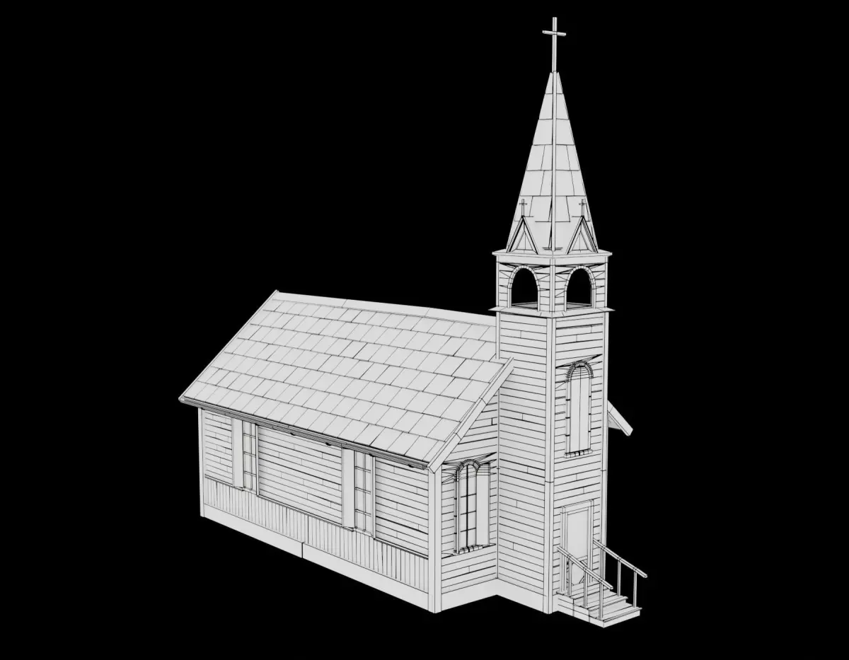 A finely made low-poly church, an authentic creation fashioned using Blender's tools and expertise.