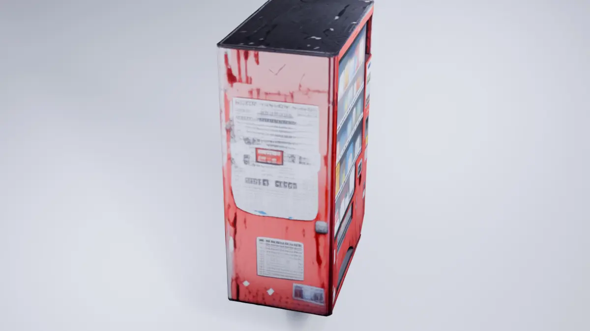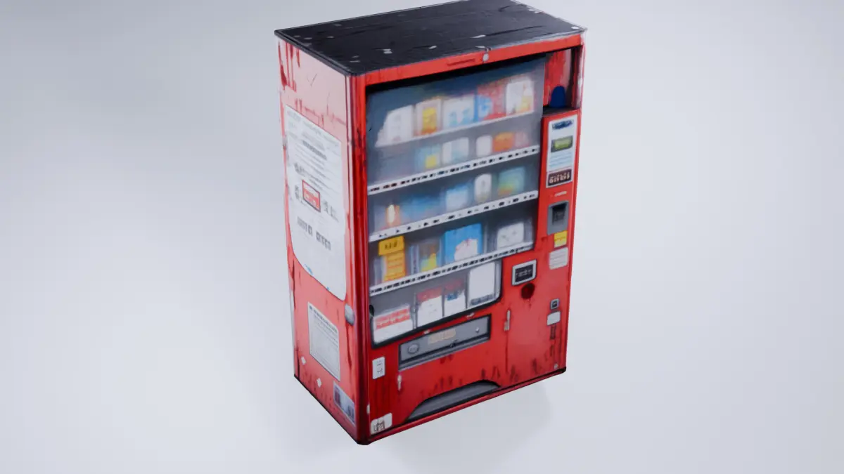 A stylized 3D model of a cigarette vending machine in low poly style. This model is intended for visualization, concept design, mockups, or stylized renders. It is not optimized for real-time use. Clean and minimal geometry makes it ideal for illustrative scenes, isometric views, or design references.