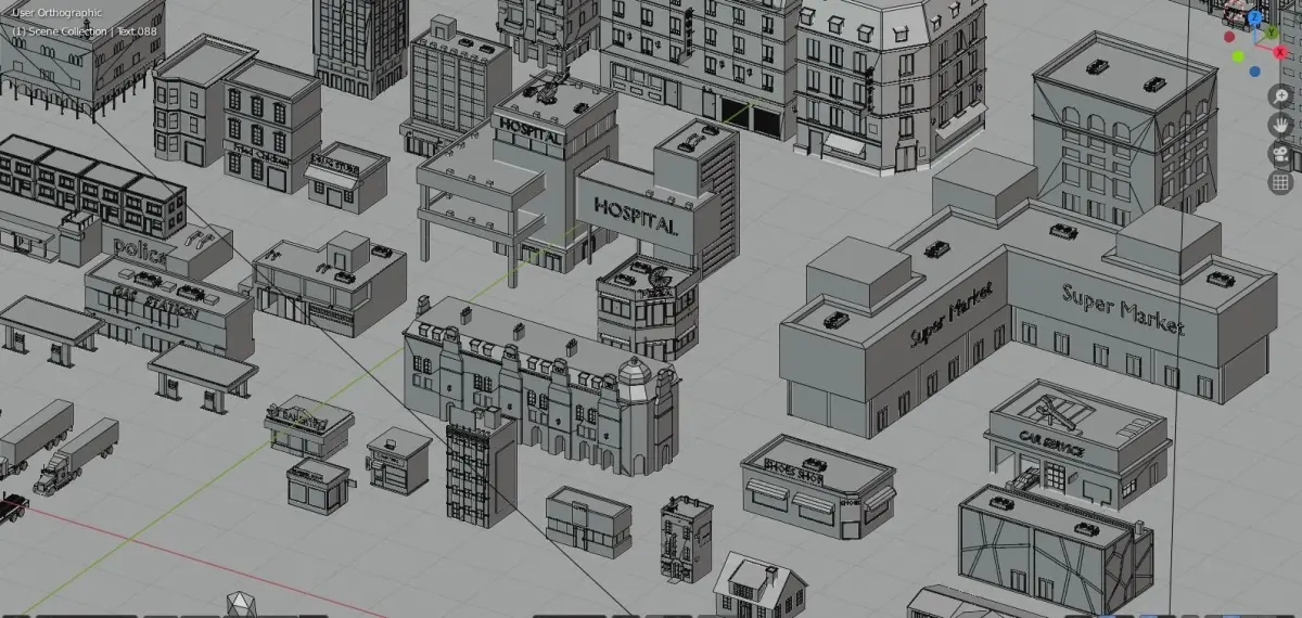 *Buildings : police station, barbershop, hotel, bank, basketball court, coffee house, office, supermarket, fast food restaurant,bus station,taxi station ,airport,train station,school, Residential and commercial buildings,house,villa,2 gas station, 2 factory, Gymnasium,books store,drog store,bakery,courthouse,bridje,library,flowers shop,tv building,hospital,insurance building,shoes shop ,fried chicken ,photo express,computer shop,cinema,post office,stadium,car parck,car service,vegetables shop,Chalet and more.....*Vehicles : Many different types of cars, trucks, and buses, in addition to a motorcycle and antenna, as well as a plane and a helicopter, and two different types of trains as well as two ships and a boat
