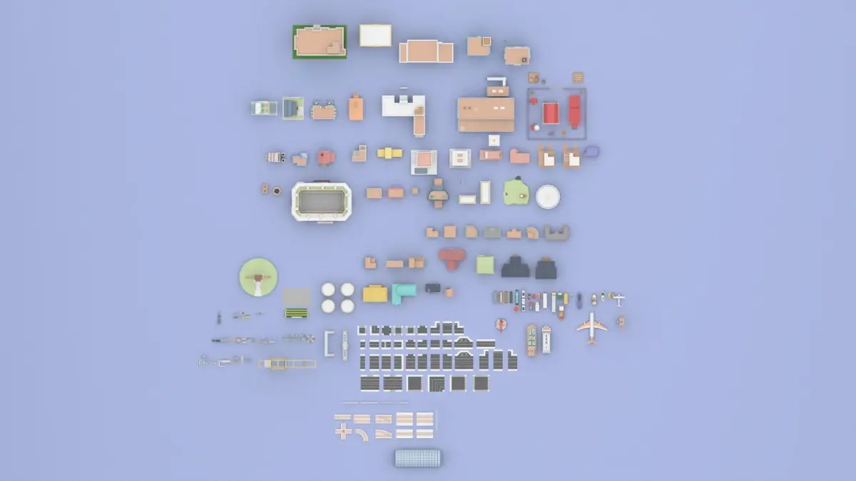 Contained in this Pack are :-Transport-Airport Station-Bridges, Containeer, Ship, Vehicles-Motel-High School -Bus Station-Buildings Set-Hospital-Gas Station-Football Stadium-Rooftop Equipment-Street Props-Ferris Wheel-Light House-Basketball Court-Board Sign, Rooftop Sign-Trees, Roads, Railway-Town Apartment -Farm-Aeroplane, Helicopter, Rocket, Highway Board and Many more