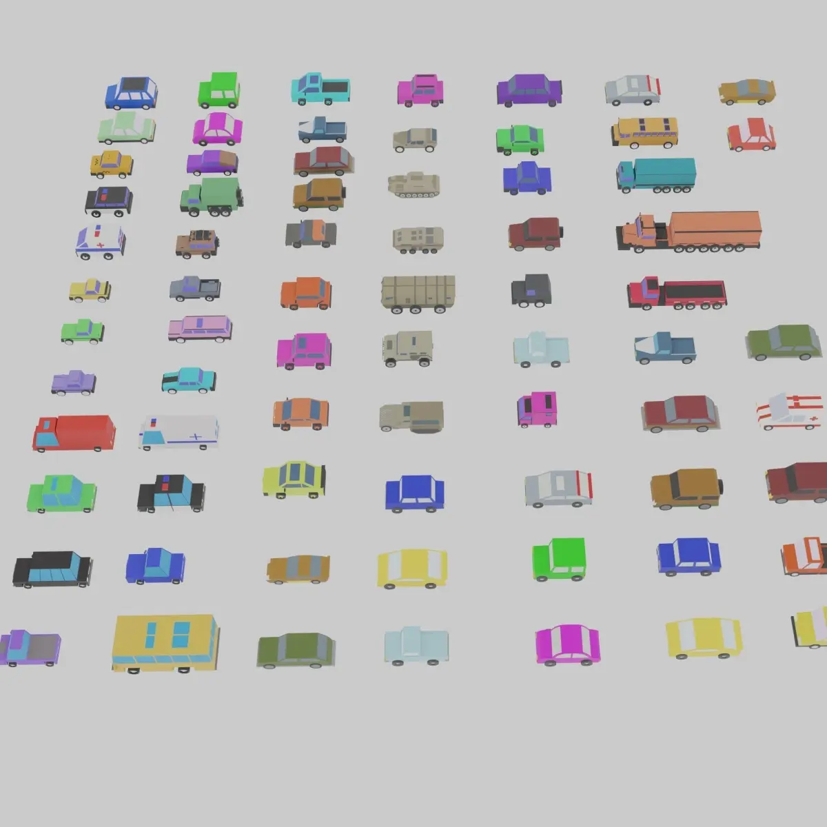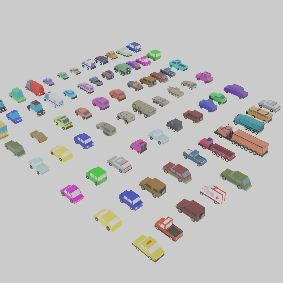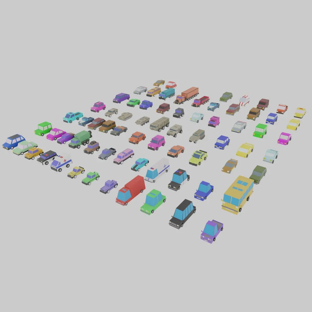 This is the collection of 72 low-polygonal pre-textured models of various city vehicles. Purchasing this collection you are saving 70% of price buying models separately.