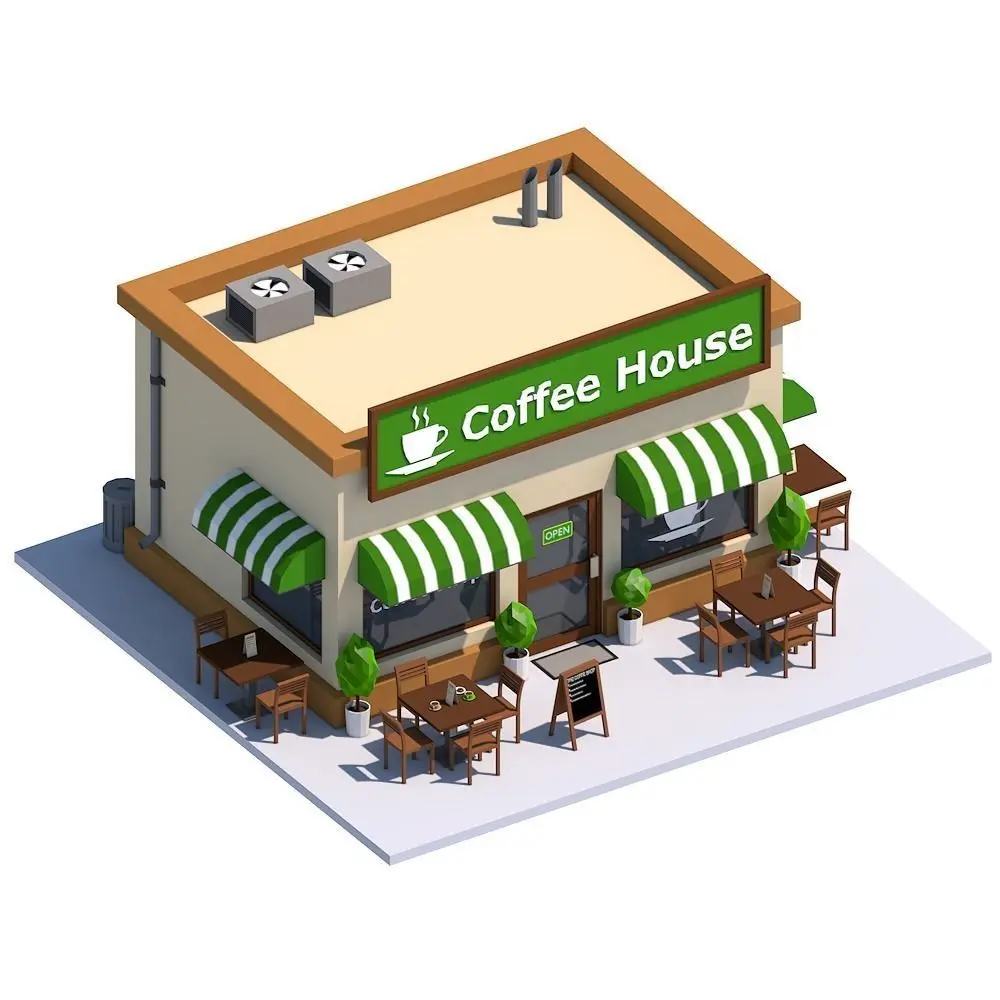 Low Poly Coffee House.(exterior only)