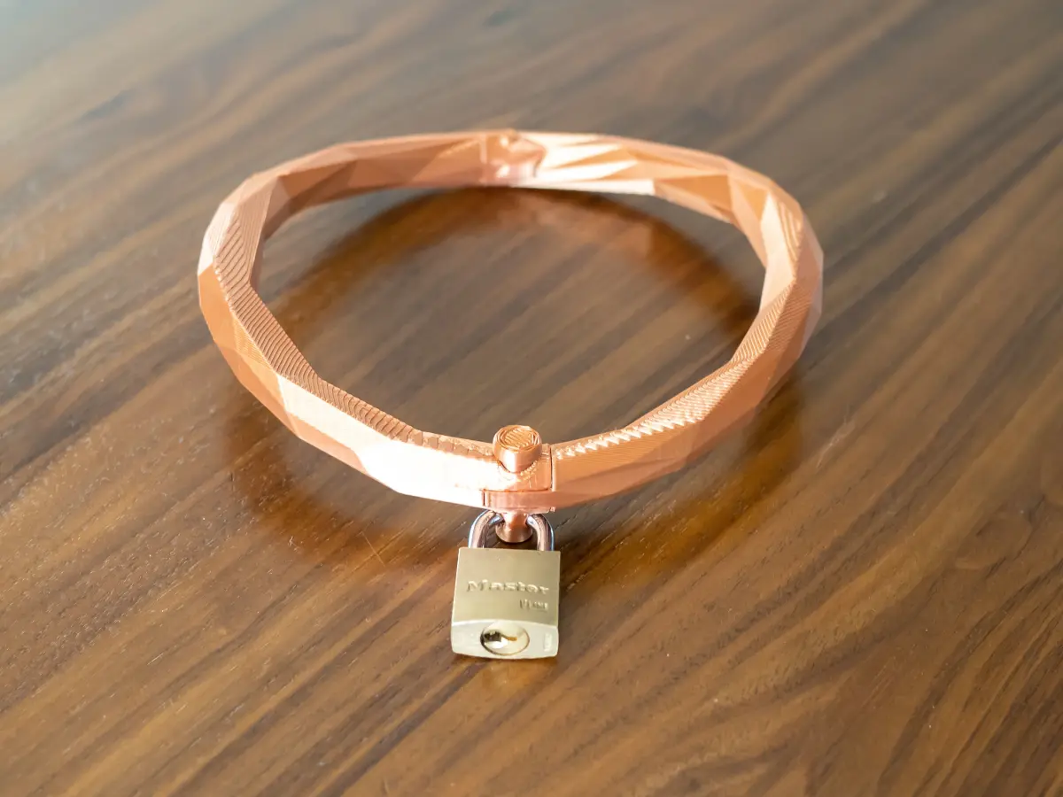 An elegant, beautiful and easy to print collar. The included zip has eight sets of .stl files, for neck circumferences from 12to 17 (30-44cm). Simply measure the circumference of the wearer's neck and choose the next size up to print. The files will print easily on a bed at least 220 x 220mm. My example collar pictured was printed in copper silk PLA at the 13.5" size.