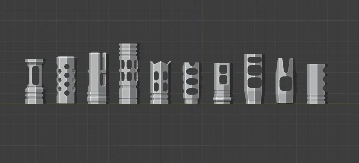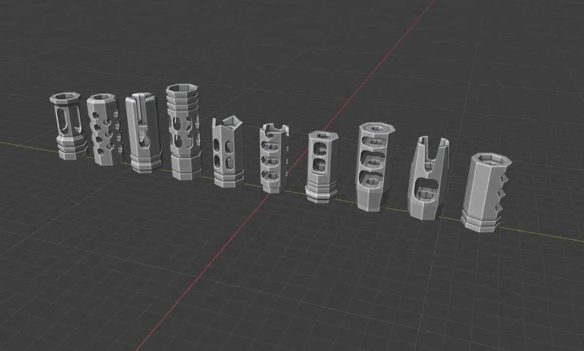 A pack of 10 Low Poly Compensators/Muzzle Breaks