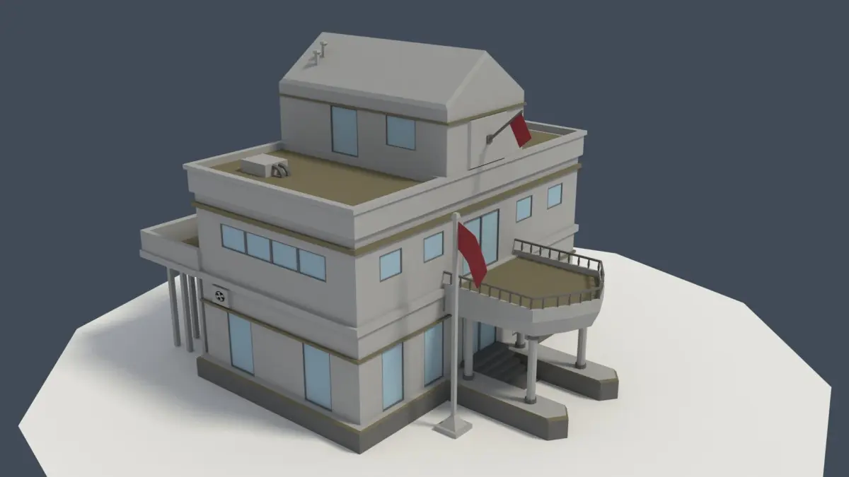 A low poly government building resembling a consulate or an embassy. I just put red color to the flag, feel free to change or delete it.