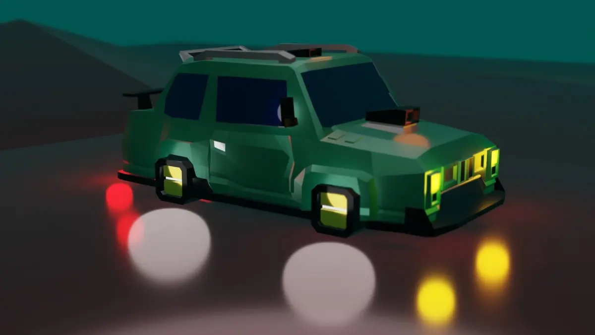 extremely low poly futuristic car no texturesmaterial coloured onlyfree to use and redistribution