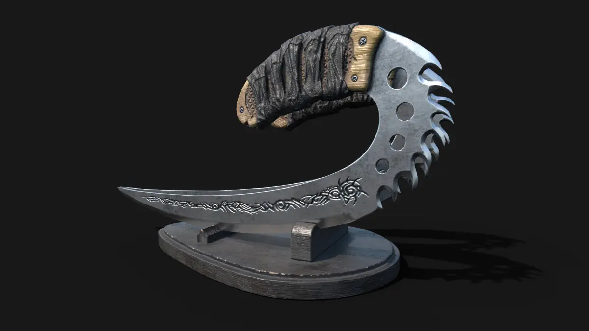 Low-Poly Daggers 3D model with PedestalOne dagger - 1614 tris. Pedestal - 440 tris. Textures - 2048x2048Textures for V-ray and PBR from exported Substance Painter.Render from Substance Painter.Inspired by The Chronicles of Riddick movie.