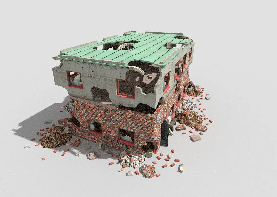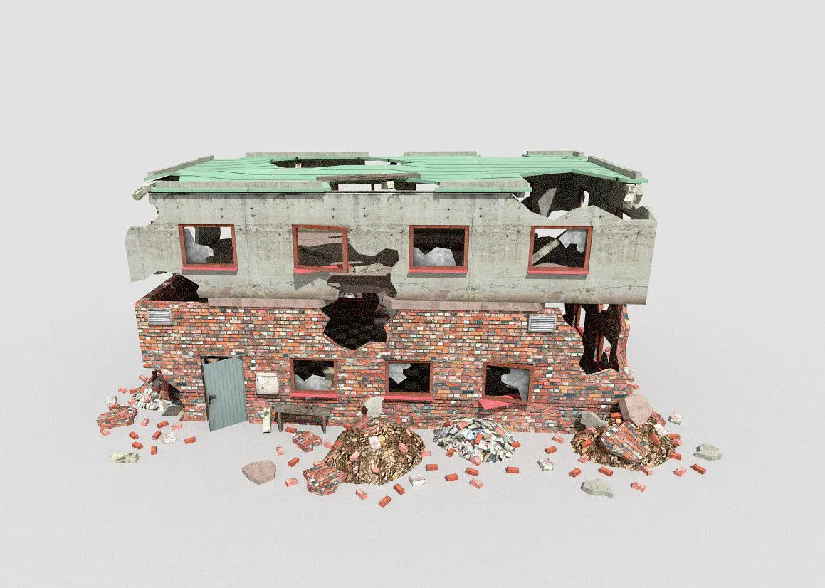 HomeCataloglow poly destroyed building 4 Low-poly 3D model