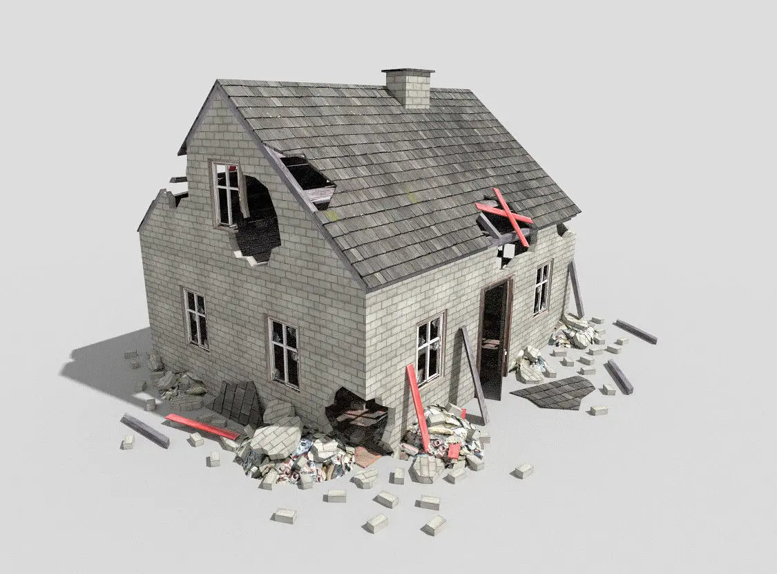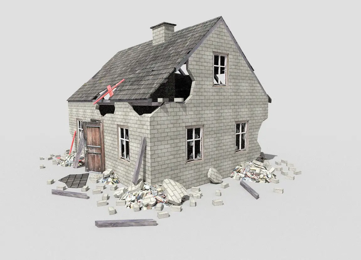 low poly 3d model of destroyed building. Highly detailed.