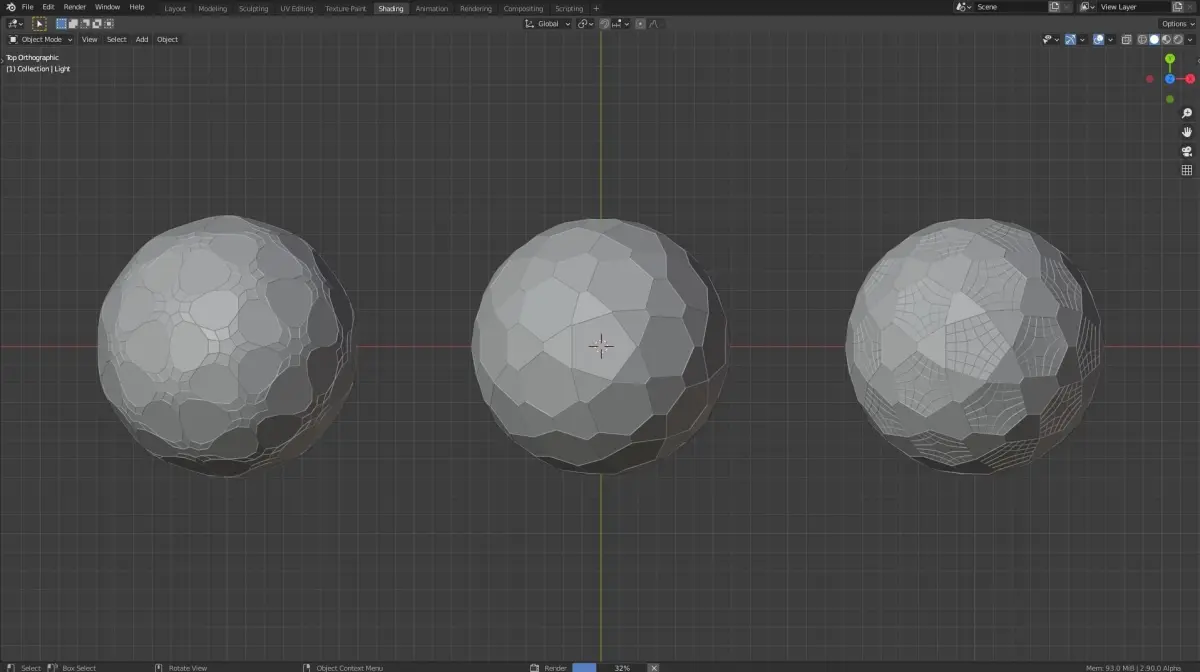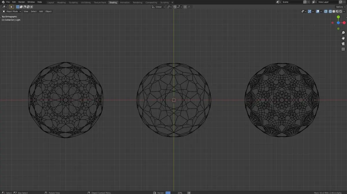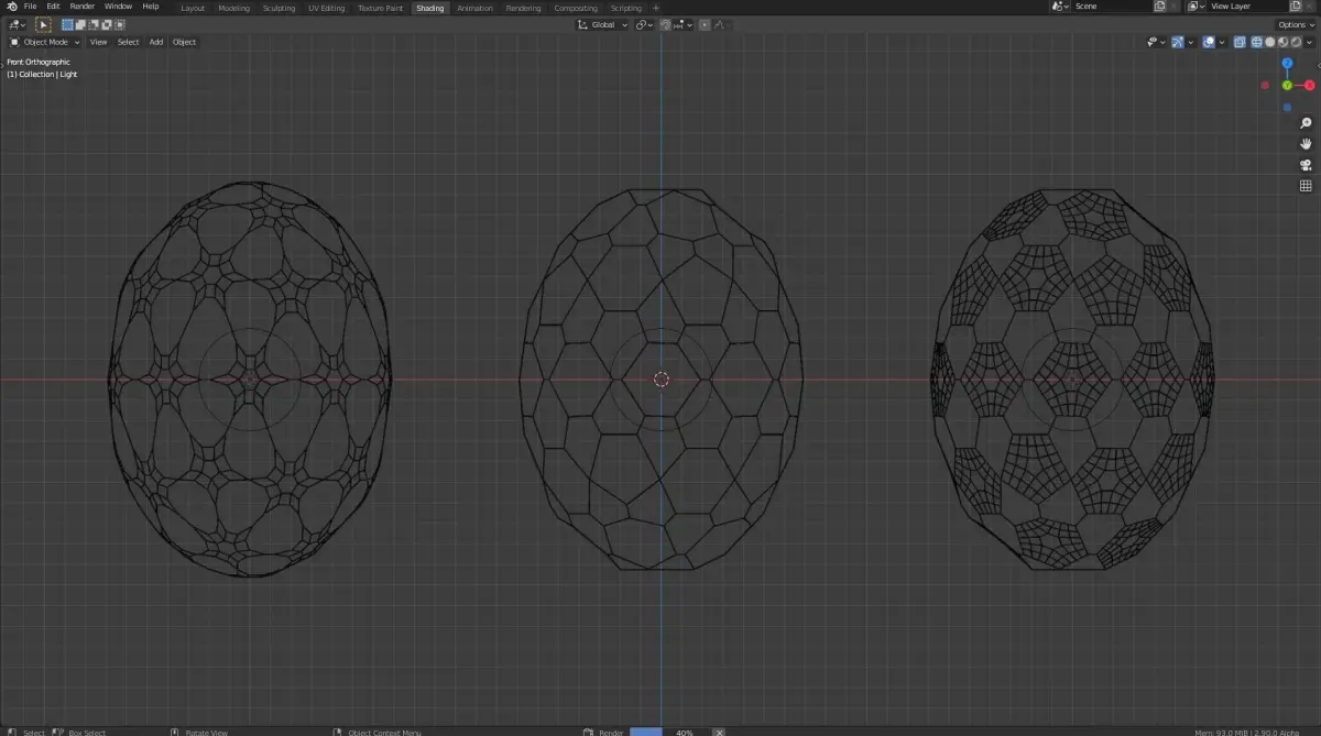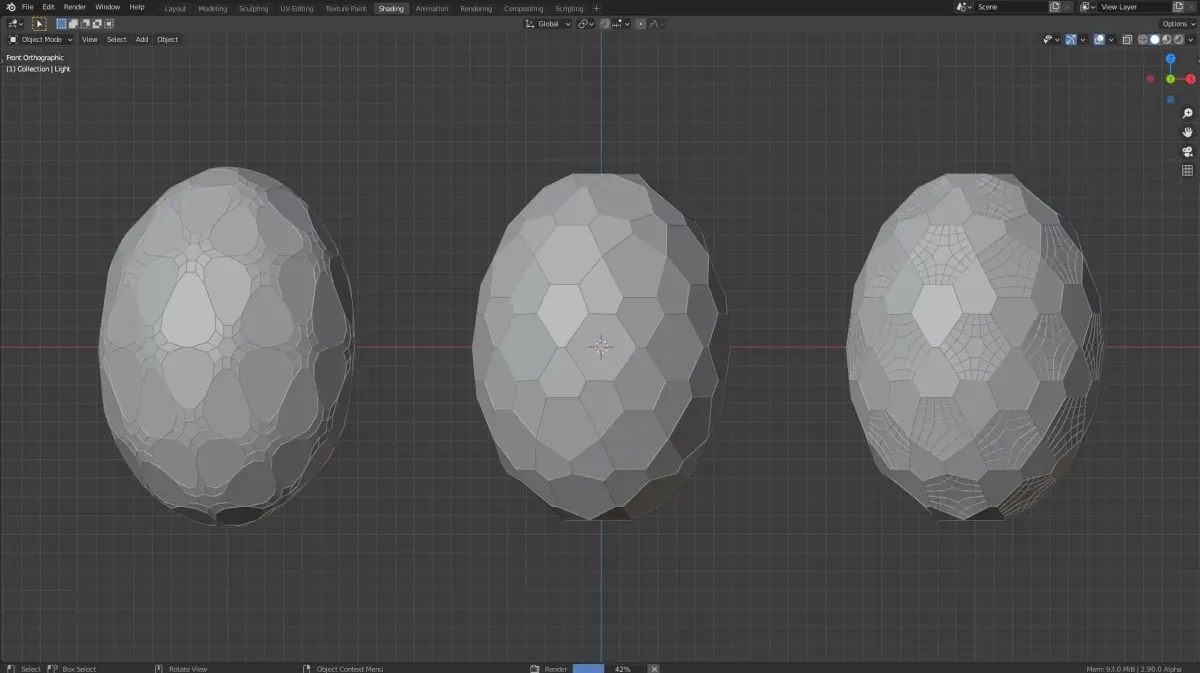 Three different dragon eggs with different patterns witch were made using a bevel modifier and a wireframe modifier. The glow on the inside of every individual egg is achived with a pointlight on the inside. the look of the pattern can be changed with the bevel and the wireframe modififer. The colour of the eggs can be changed in the shading tab by changeing the value of the multiply and the add nodes.
