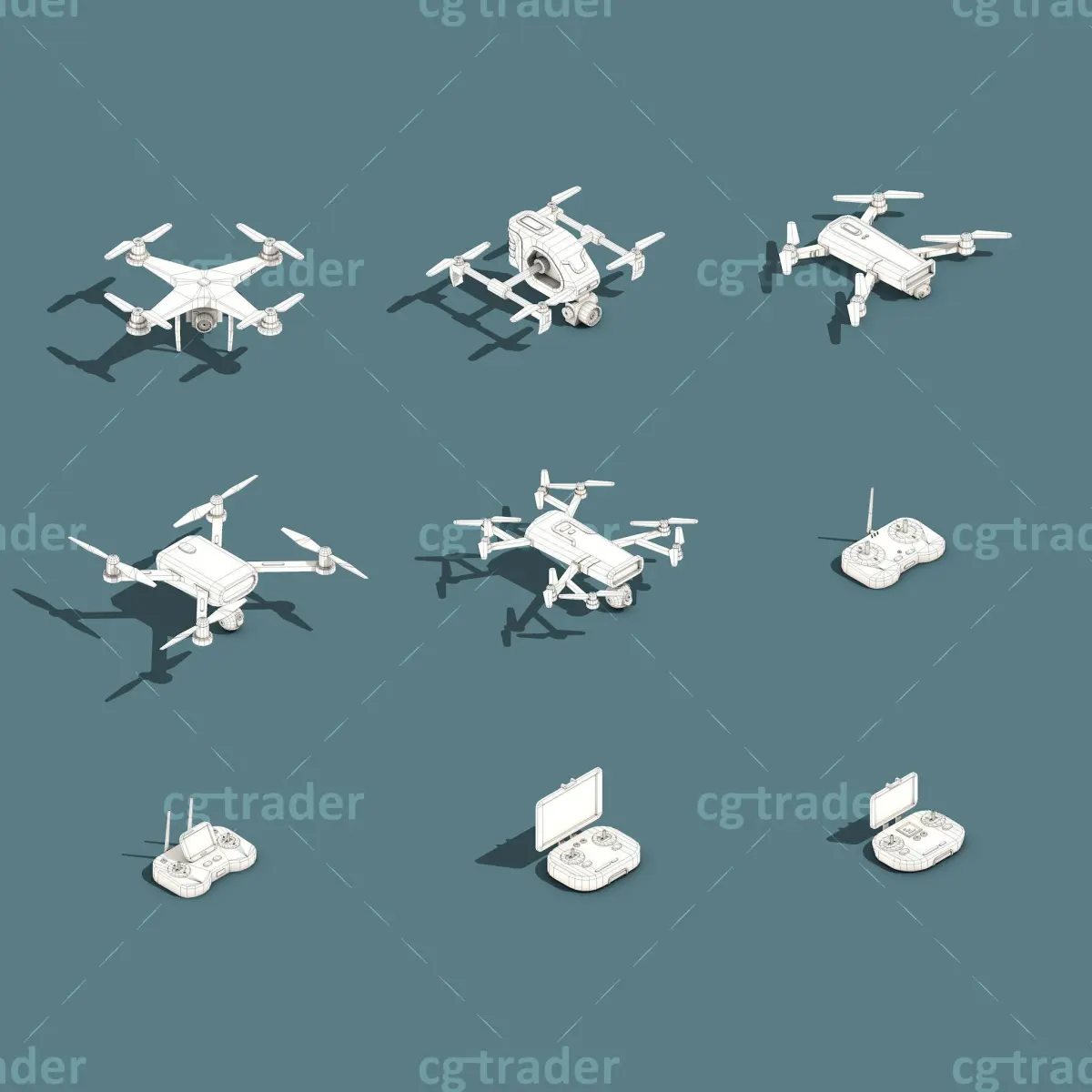Rendering standard in Cinema 4D. Texture file size(2048*2048), You can easily adjust the color by dragging the uv. Model ready for game, render, make videos, motion graphics, inforgraphic, 3d map..e.t.c. This package contains various types of drone, remote controller. There are many other packages here: https://www.cgtrader.com/linkdo