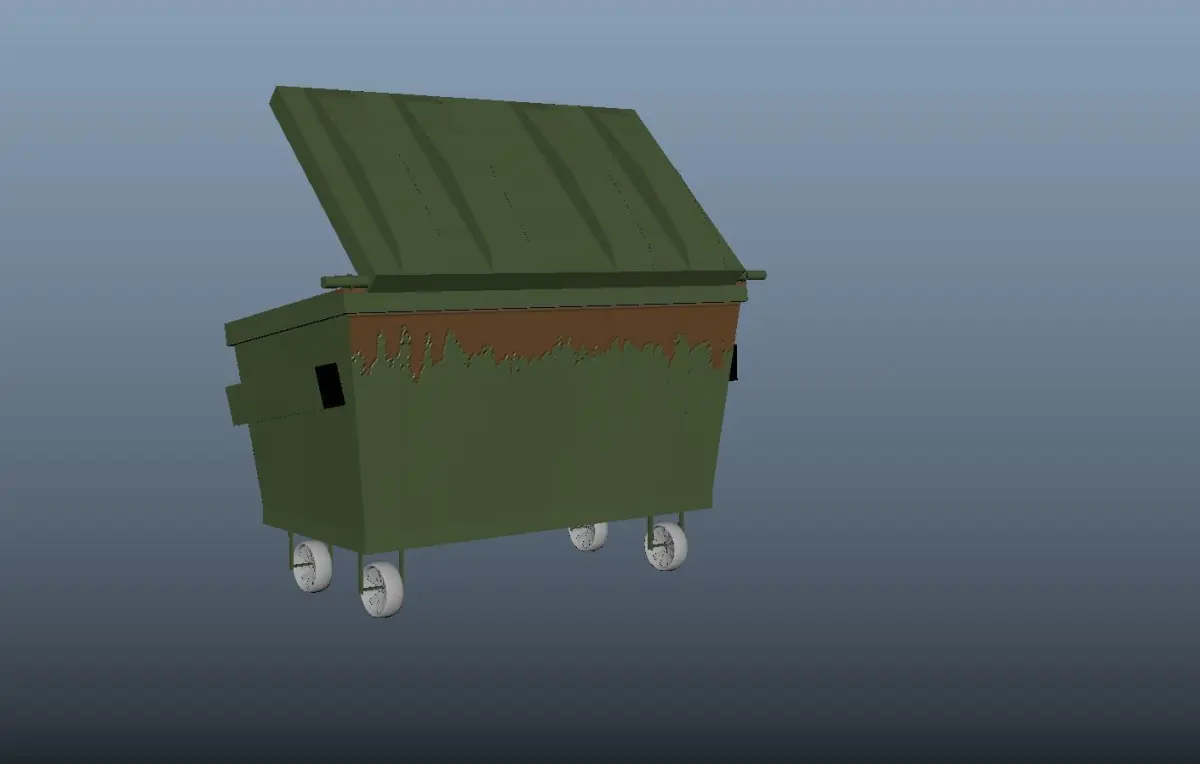Low poly rusty green dumpster