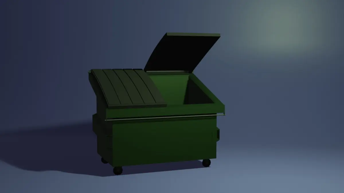 Here is a Low Poly Dumpster with some basic materials, great of games and background props. The lids are also separate from the object so you can change them for your needs.