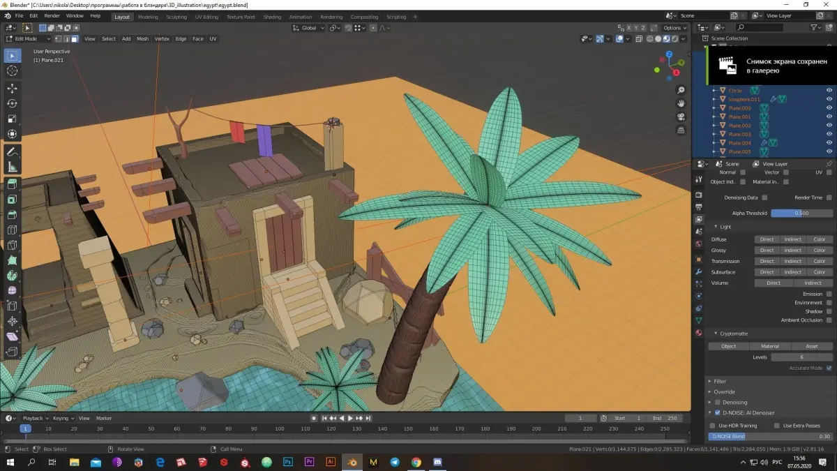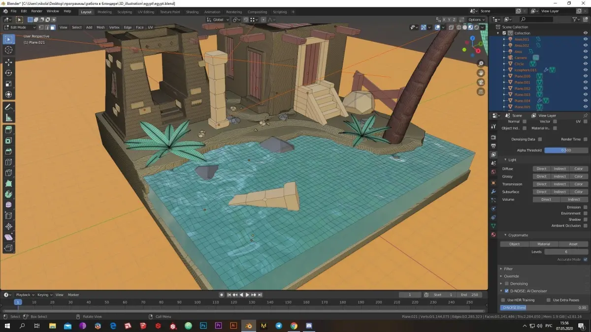 Low-poly Egypt installation made in blender 3D version 2.8.2