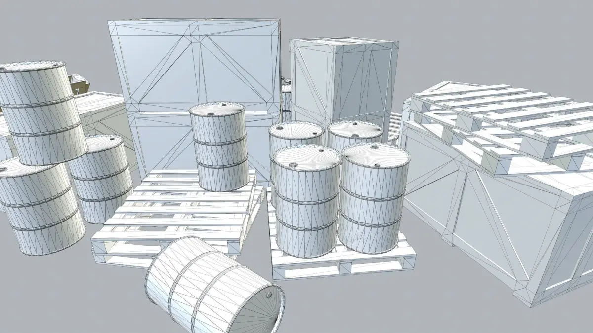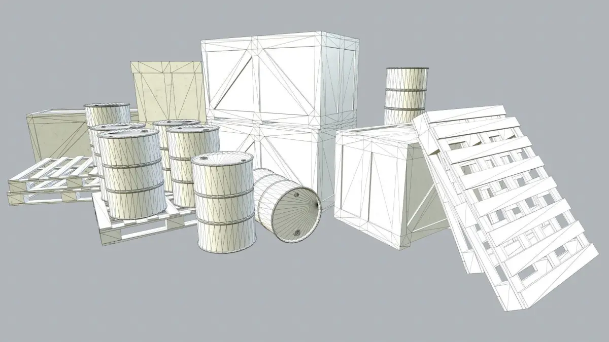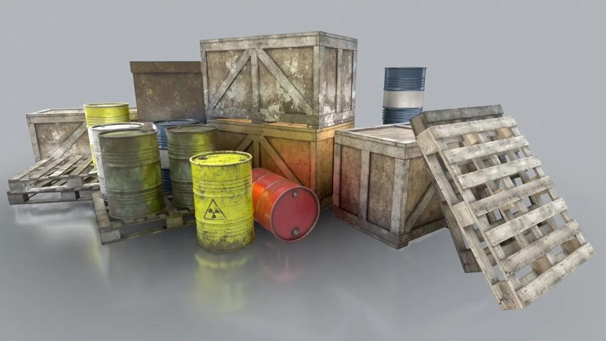 Low poly barrel, box and pallet with multiple baked textures for each. Modelled in Maya - low poly and textured in Substance Painter. Each asset has it's own texture.