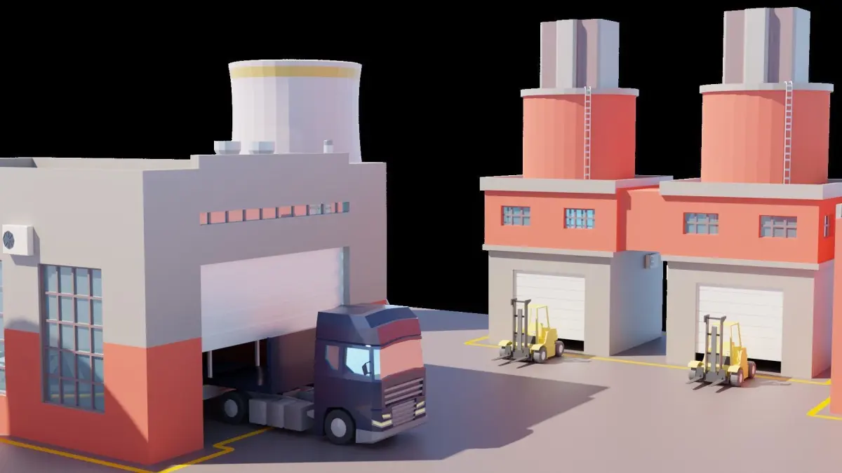 3 Type Factory3 Type chemical store2 Type chimney2 Type TruckForkliftSecurity HutCarTreesAnd many other things