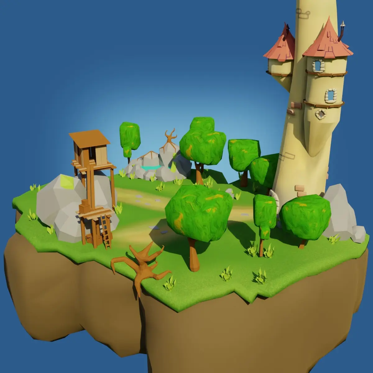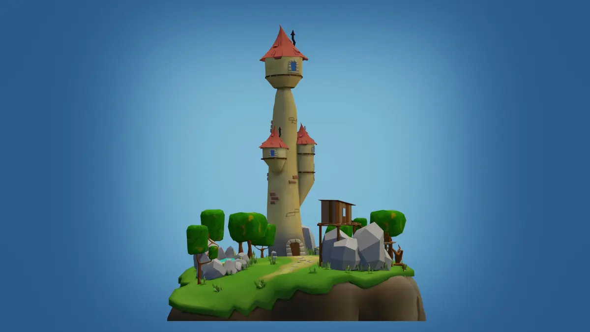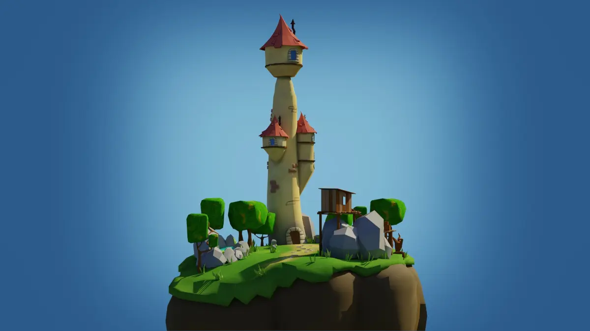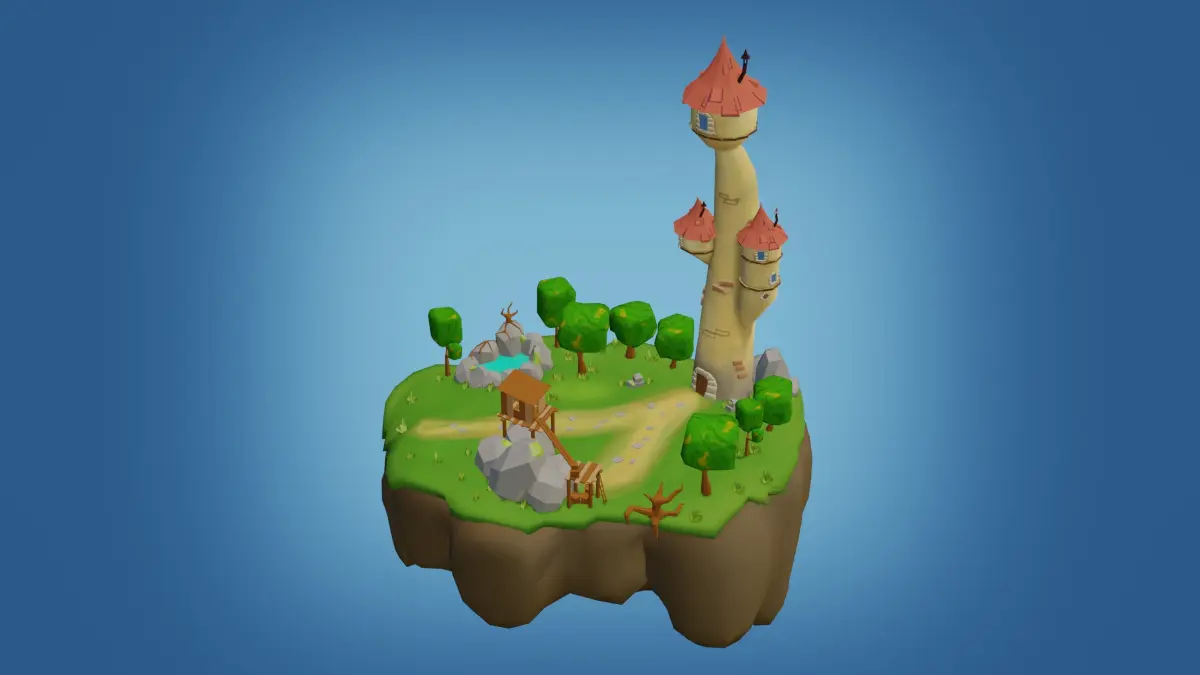 Low Polygon fantasy castle on a floating island setting optimized scene of high quality.