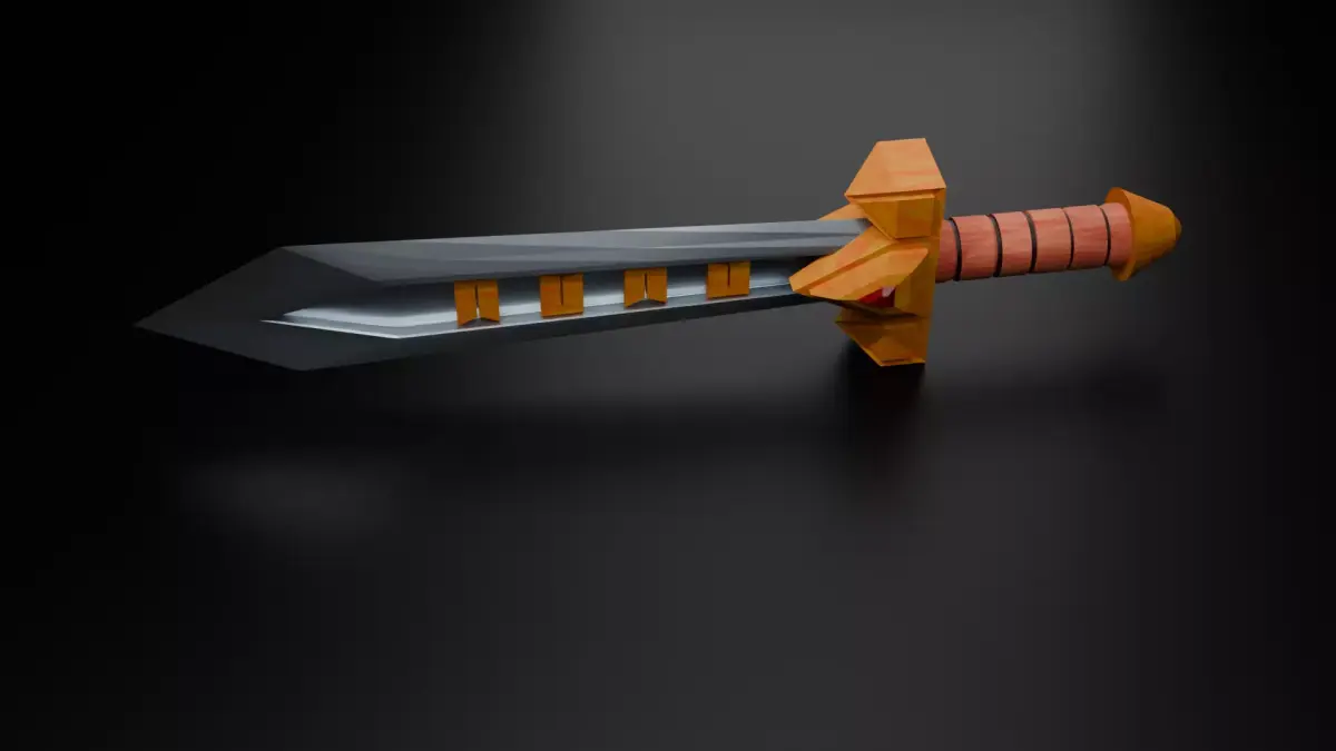 This low poly fantasy sword is a clean, stylized game-ready weapon designed for real-time applications such as games, VR, and AR projects. The model features a sharp, angular blade with decorative inlays and a warm-toned guard and handle, blending a stylized look with realistic materials.