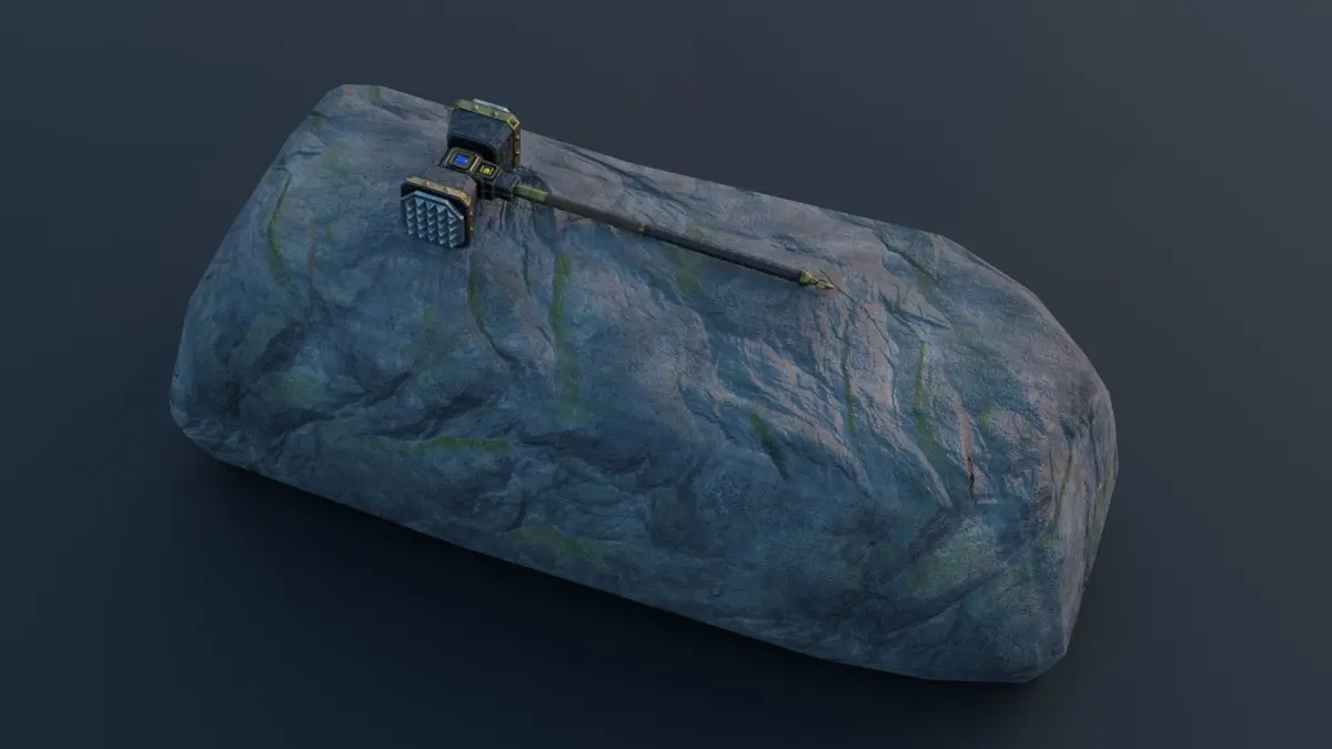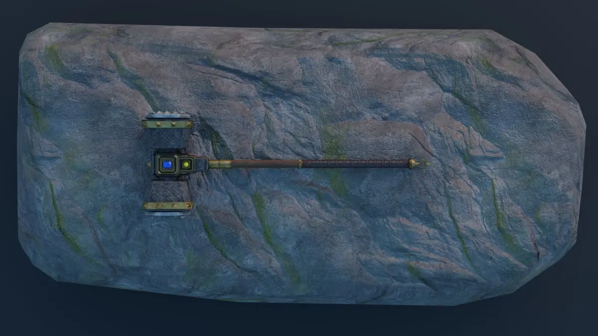 Game Ready Low Poly Fantasy War Hammer on rock 3D Model PBR