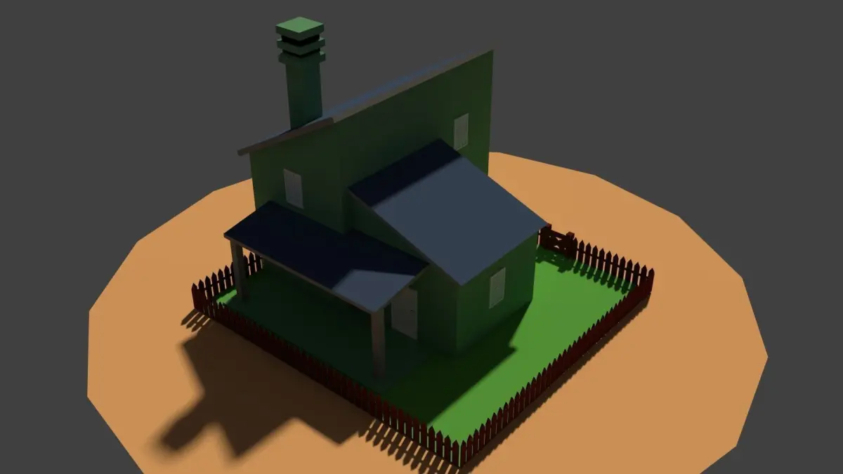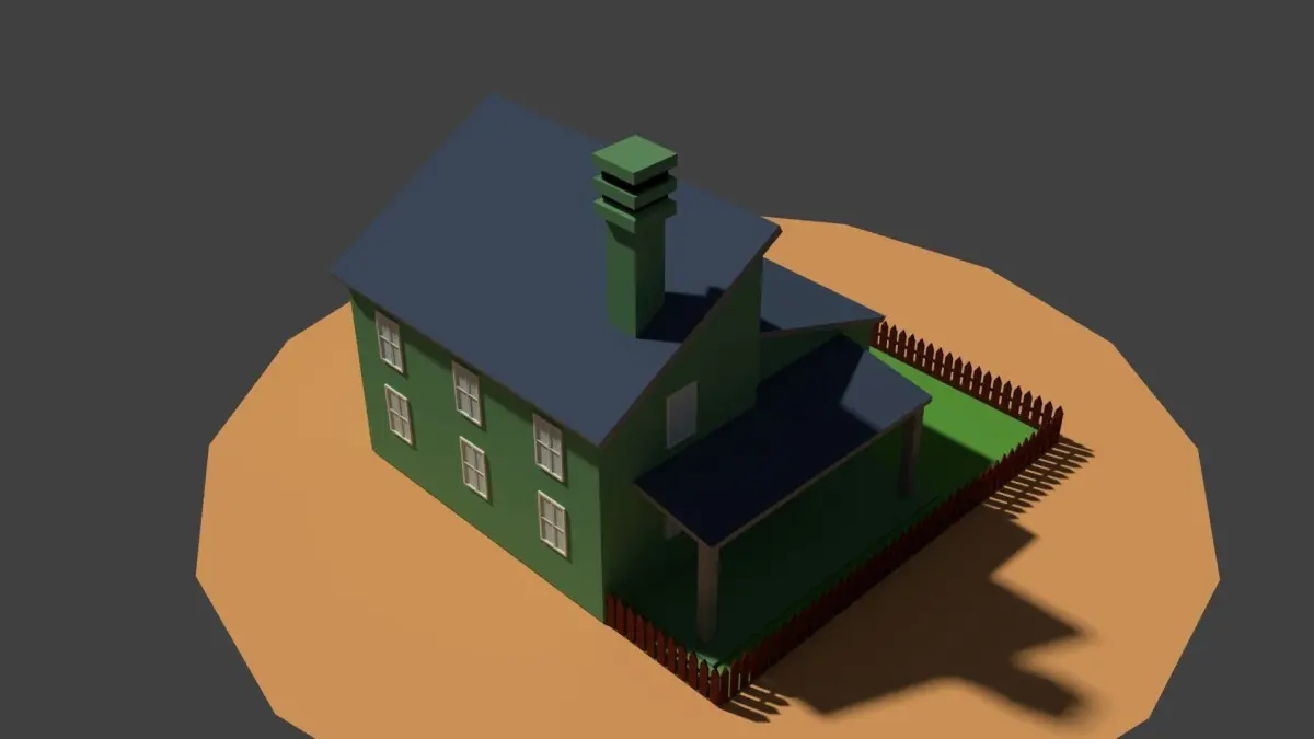 Second version of the low poly cartoony farm house model, half of it is surrounded with a wooden fence. Check out the wireframe preview images as well.