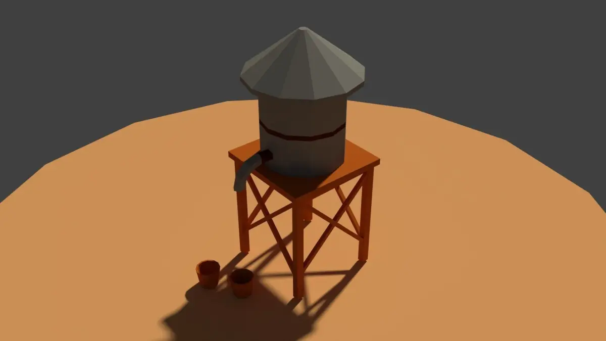 You have to keep water clean and safe somewhere right? Low poly cute well model and also a little wooden bucket.