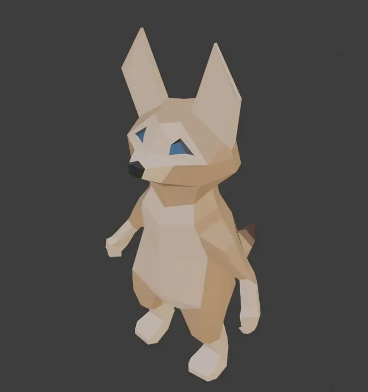 Stylized low-polygon Fennec Fox game characer. Mobile/Gaming. Please see her friends: Raccoon, Squirrel and Bunny.