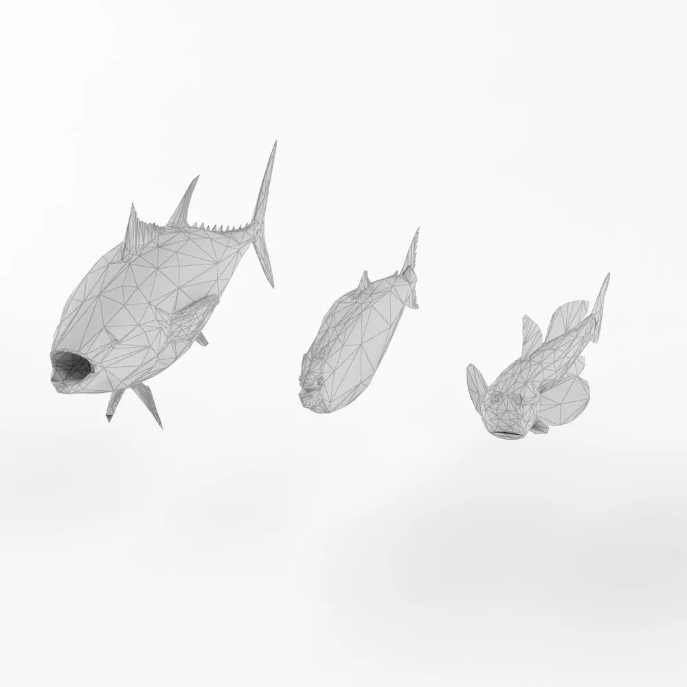 Low poly fish set for games and other purposes. You can just import and use this model for anything you want. If you looking for a low poly models, you can check my portfolio. Anything you need please contact to me. ***PRODUCT DETAILS AND INFORMATION*** -Scene is ready to render. -Created with Autodesk 3DS Max. -Rendered with 3DS Max V-ray. -I also give the lights, cameras and other items for this scene. -You can use it for your games and other creative areas. -Basic material included. If you need more complex materials, please contact with me. -Map coordinates are fit to zero. Just import it to your scene and its done! -You can check my other creative models. If you want anything special or questions, please ask me. I am open for your suggestions and comments. Thanks! FORMATS included: 3ds Max(.max) Version: undefined, Renderer: V-Ray 3.00 OBJ (.obj) Autodesk FBX Left to righ: fish 1: 1600 poly fish 2: 1300 poly fish 3: 800 poly