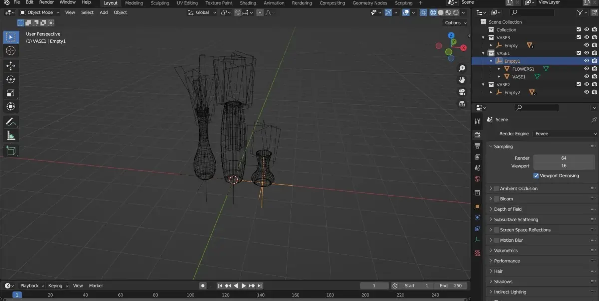 Flower vase set made in blender. Flowers are textures with transparent background on a plane. This significantly reduces polycount while looking great from most angles. Blend file is texture packed and a .rar file with textures is also available. flowers and vases(all included with purchase) are different objects under an empty and can be individually manipulated