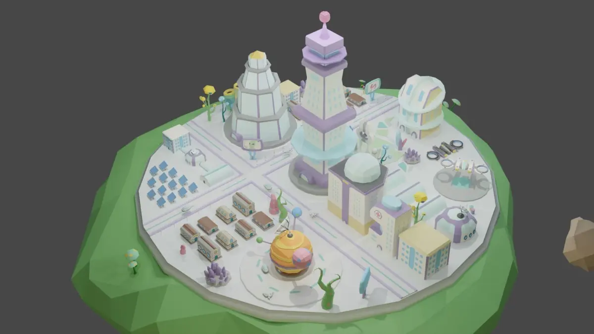 This set includes 53 unique props: island / dome / crystals / buildings / skyskrapers / houses / solar stations / spaceships / plants / trees / mushrooms / flowers and much more!Includes a ready-made flying island scene. And you can scale the island to the size you need.