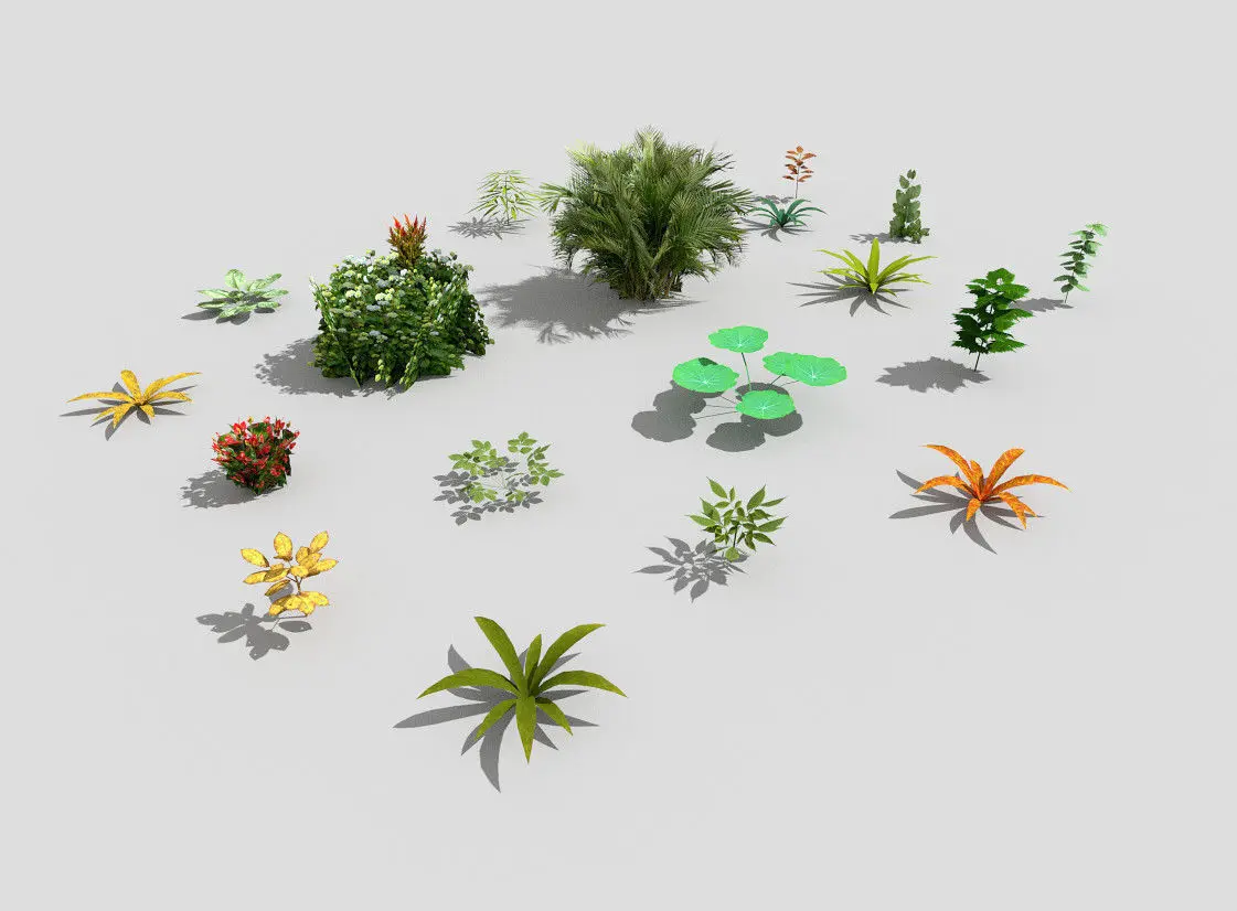 this collection contains 20 various low poly plants. all models are completely textured and unwrapped.