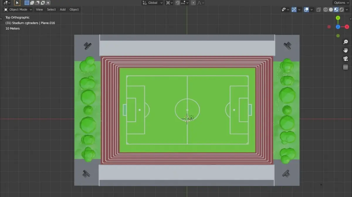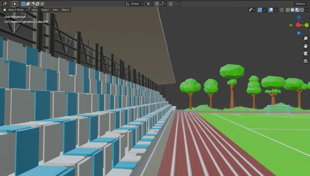 A quality and well-designed model of a low-poly football stadium. Made with BlenderContains models of seven different trees, a football, football net, stadium seats, stadium headlights, and grass.Contains the texture for the stadium seats, stadium headlights, and football field.