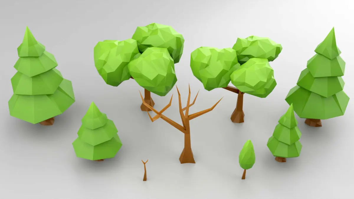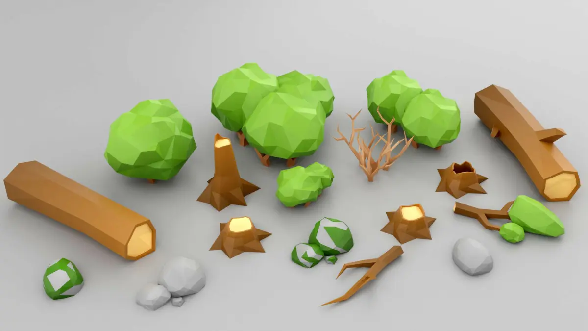 Free trial asset pack of forest landscape elements, made in low poly style.
