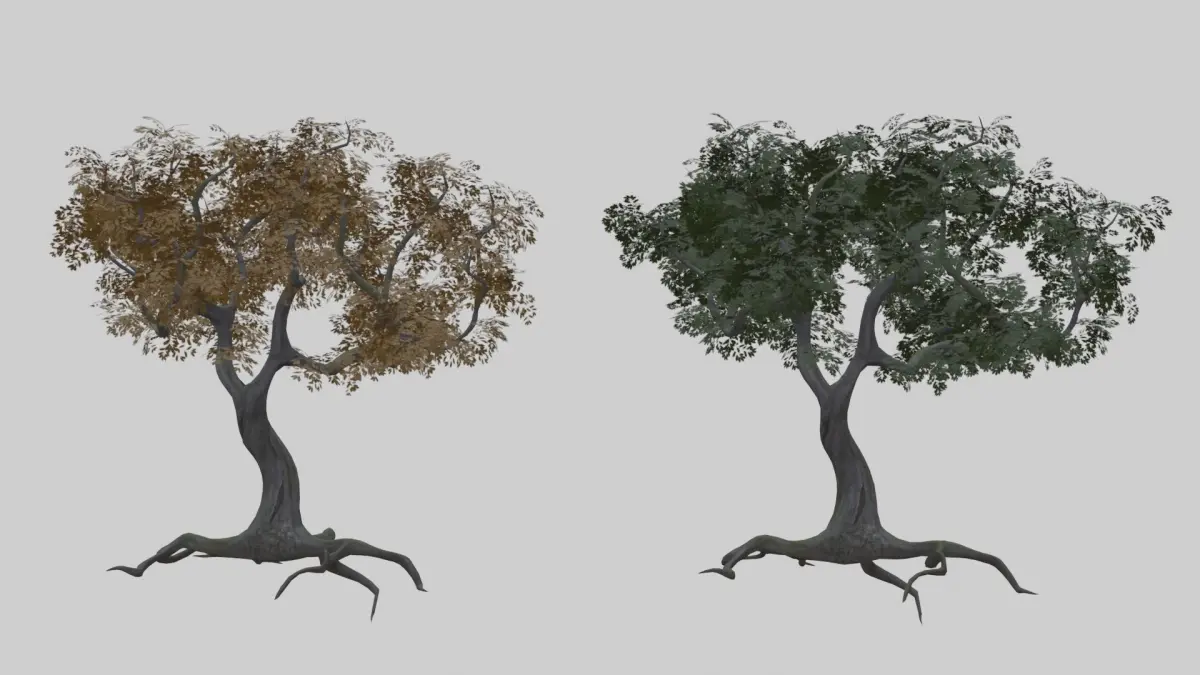 - Roots are exposed, so you can make them stick out as much as you want for realism, depending on your scene.