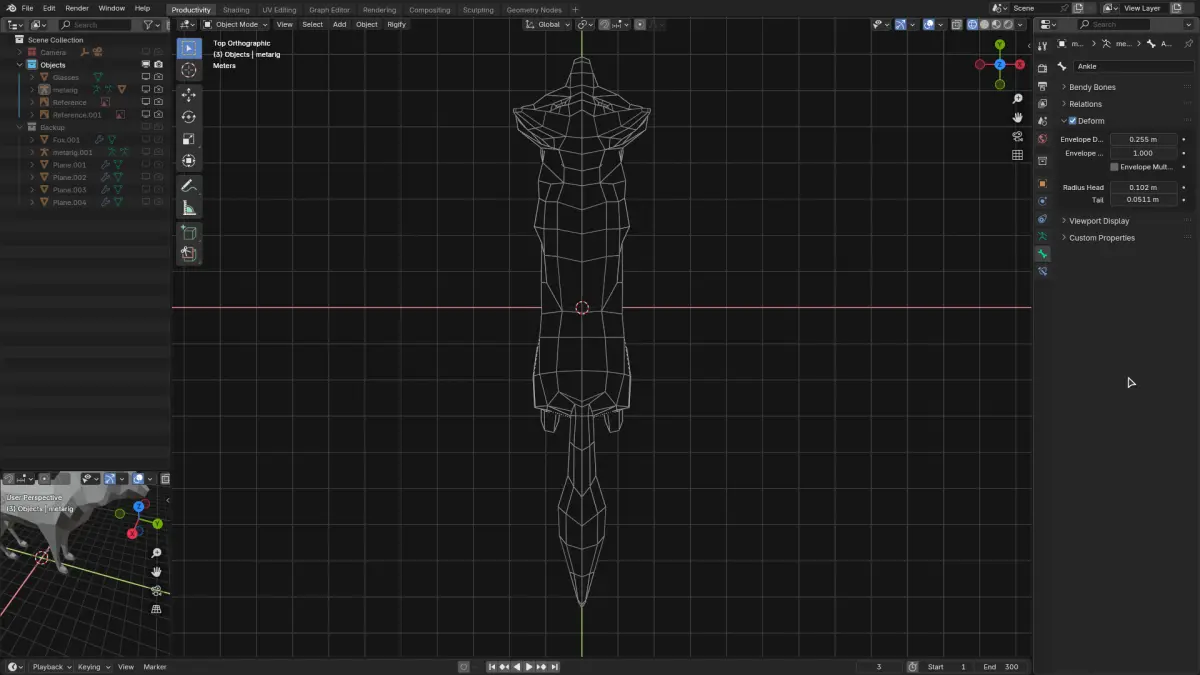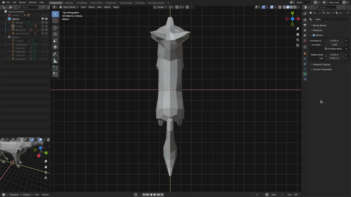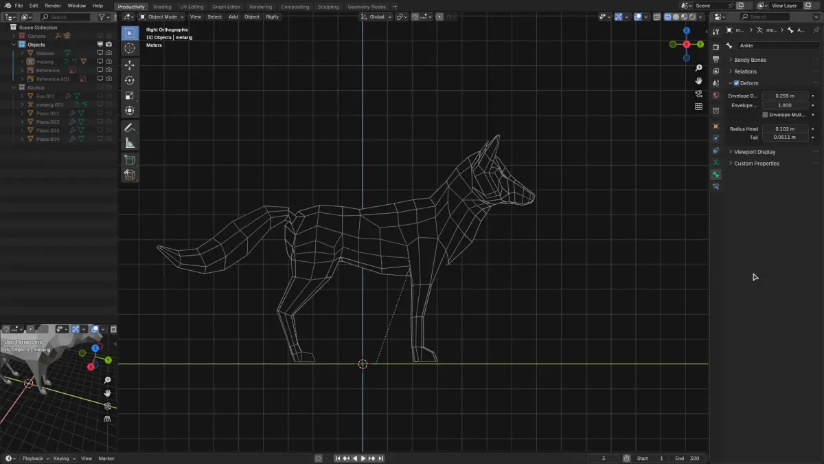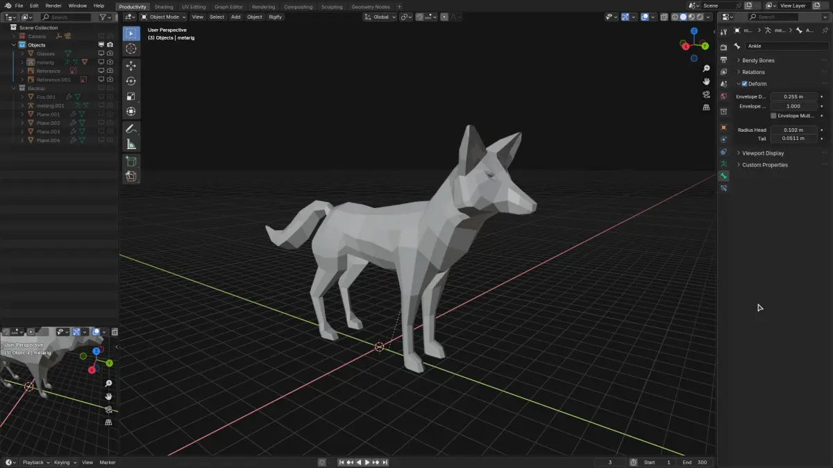 A stylized low poly fox character designed for mobile games, animations, or low-resource environments. Clean geometry with a charming silhouette, ready for basic rigging, texturing, or use as a background asset.