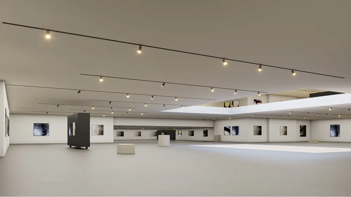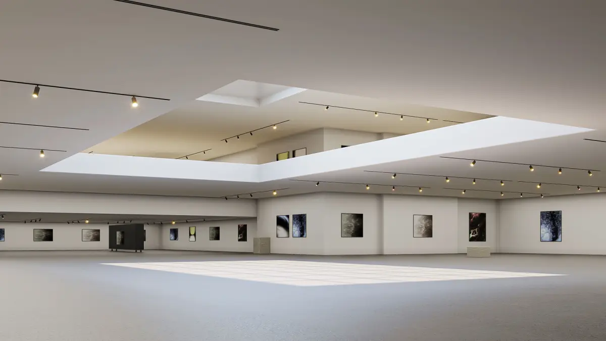 Here's a low poly interior gallery hall with ceilling light in 2 floors.