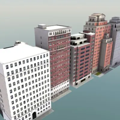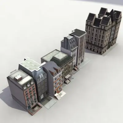 Low impact collection of 16 low-poly buiding models, great for games or mods, or filling out large areas of background for renders or animations. Instantly populate a cityscape cheaply! Just 4638 tris for all 16 buildings. Each structure uses a single texture map. More buildings coming soon. Ask for details. Textures are low res.