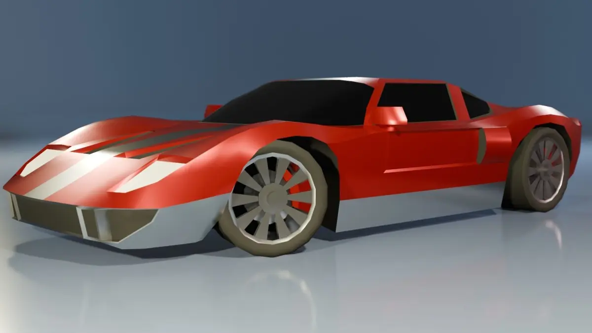 Low poly model of a sports car for your game or video. Royalty free. Separated wheels. Spec: Verts 2686 Edges 5068 Faces 2412 Tris 4752 UV Unwraped Formats; obj, fbx, blend Material - Colored Principled BSDF