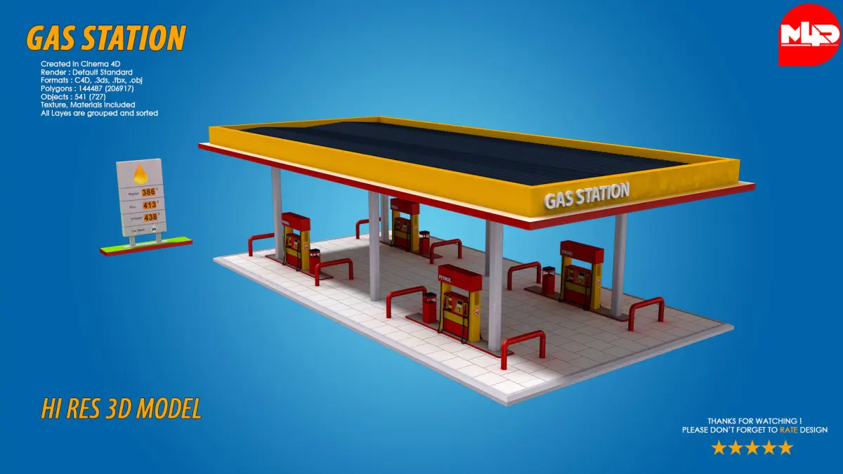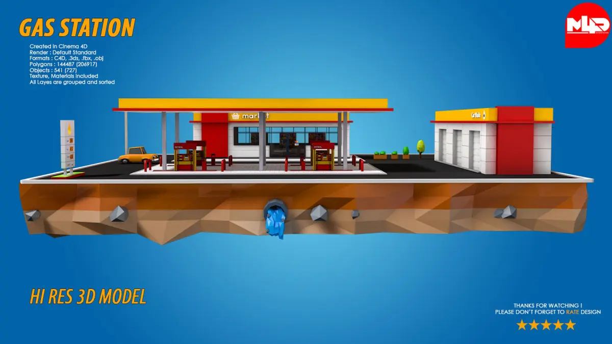 Project features: The scene consists of 3 different buildings, Includes 23 textures. The basic format of C4D (MAXON Cinema 4D) but also includes 3Ds, OBJ (multi format) and FBX (multi format) Very easy to use ? just one click for edit project! Optimization scene supporting to render even on older computers File Size 111 MB (ZIP 44 MB) All Layers are grouped and sorted Completely set up rendering Modular structure No Plugins Required Support and update project Customization 1. Gas Station Building 2. Market Building 3. Car Wash Building