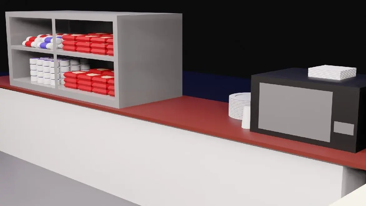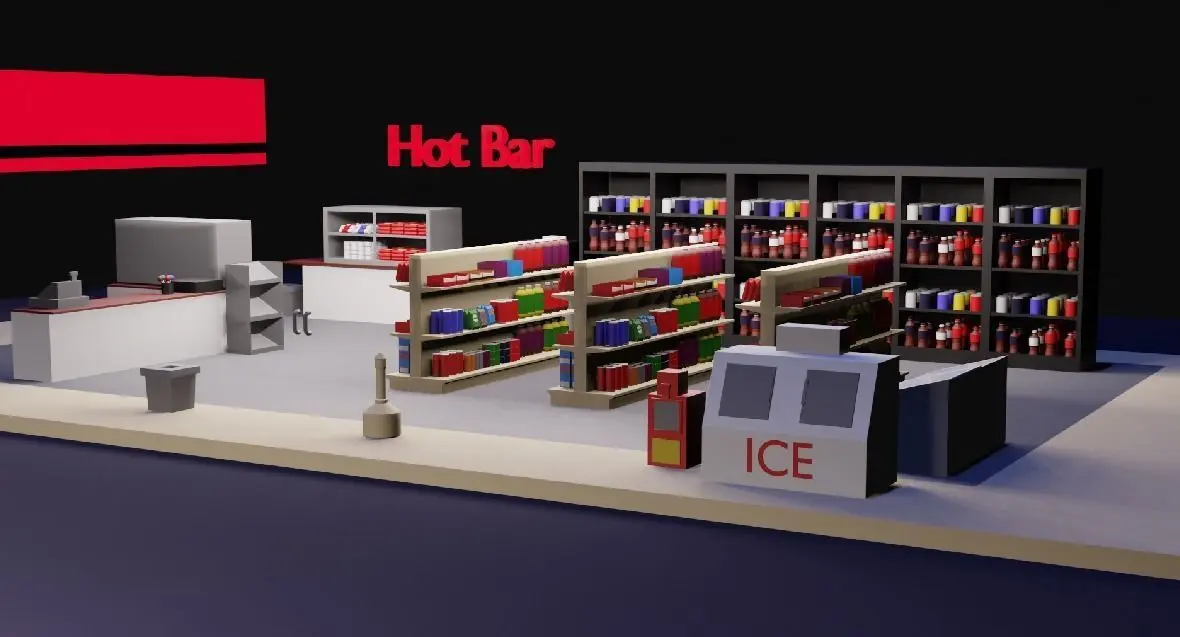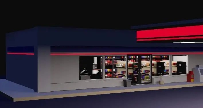 Interior:Take a look inside our gas station to find an assortment of low-poly delights. Our interior scene is a feast for the eyes, from a colorful array of chips, sodas, cans, boxes, and candies neatly displayed on shelves to essentials like a microwave, plates, napkins, salt and pepper shakers, and even delightful lollipops. The front desk and cash register give the environment more reality and bring the entire gas station experience to life.