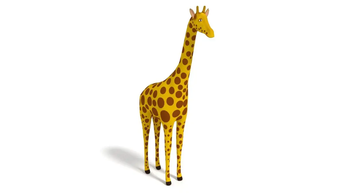 This is a low poly 3d model of a cartoon giraffe. The low poly toon was modeled and prepared for low-poly style renderings, background, general CG visualization presented as a mesh with quads only.