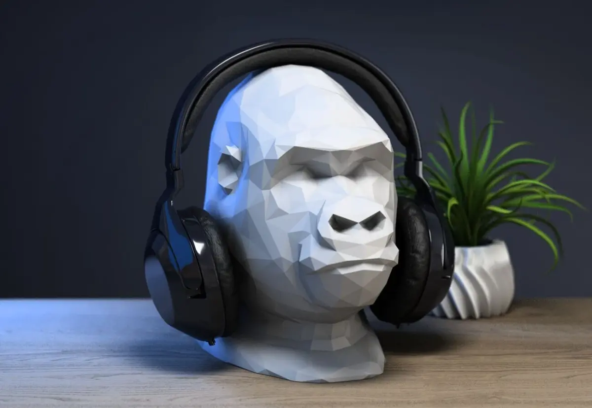 HomeCatalogLow-poly gorilla Headphone Stand Cyborg Headset Stand 3D print model