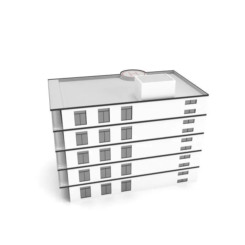 Hospital Building 3D model. The model was originally modeled in 3Ds Max 2017 (rendered with V-Ray 3.50.04) and converted to 3Ds Max 2012 (rendered with V-Ray 2.00.03)