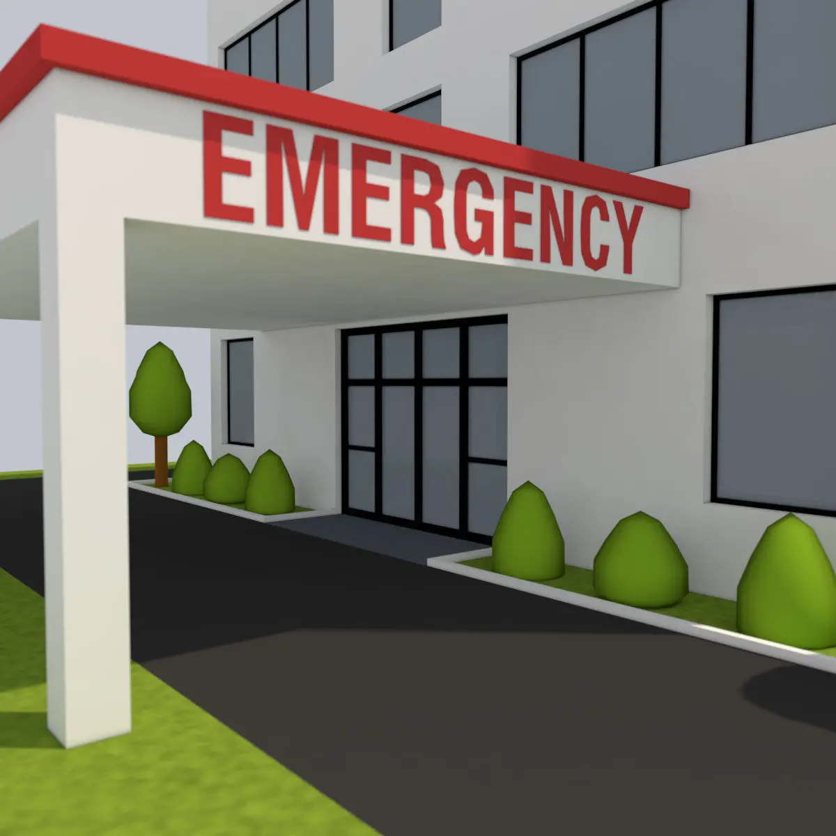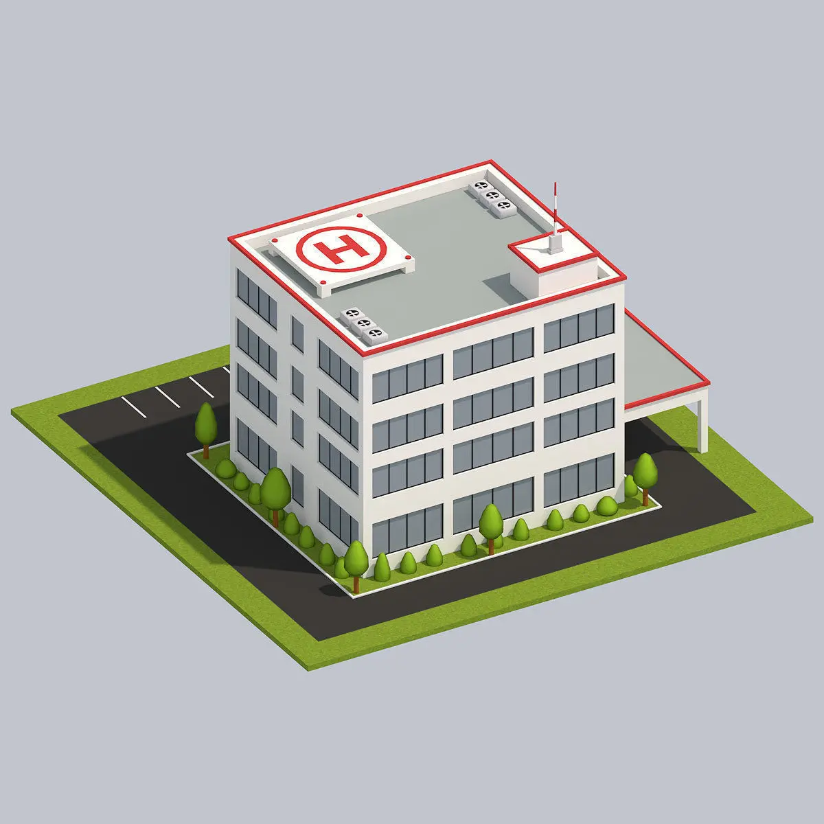 Low Poly Hospital 3d model ready for Virtual Reality (VR), Augmented Reality (AR), games and other real-time apps.