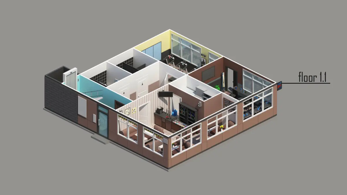 each floor has a lower level 1.0 - so that the entire apartment can be seen from the right angle and 2nd level 1.1 - which covers the walls to the ceiling and allows you to use the house to play in 360.