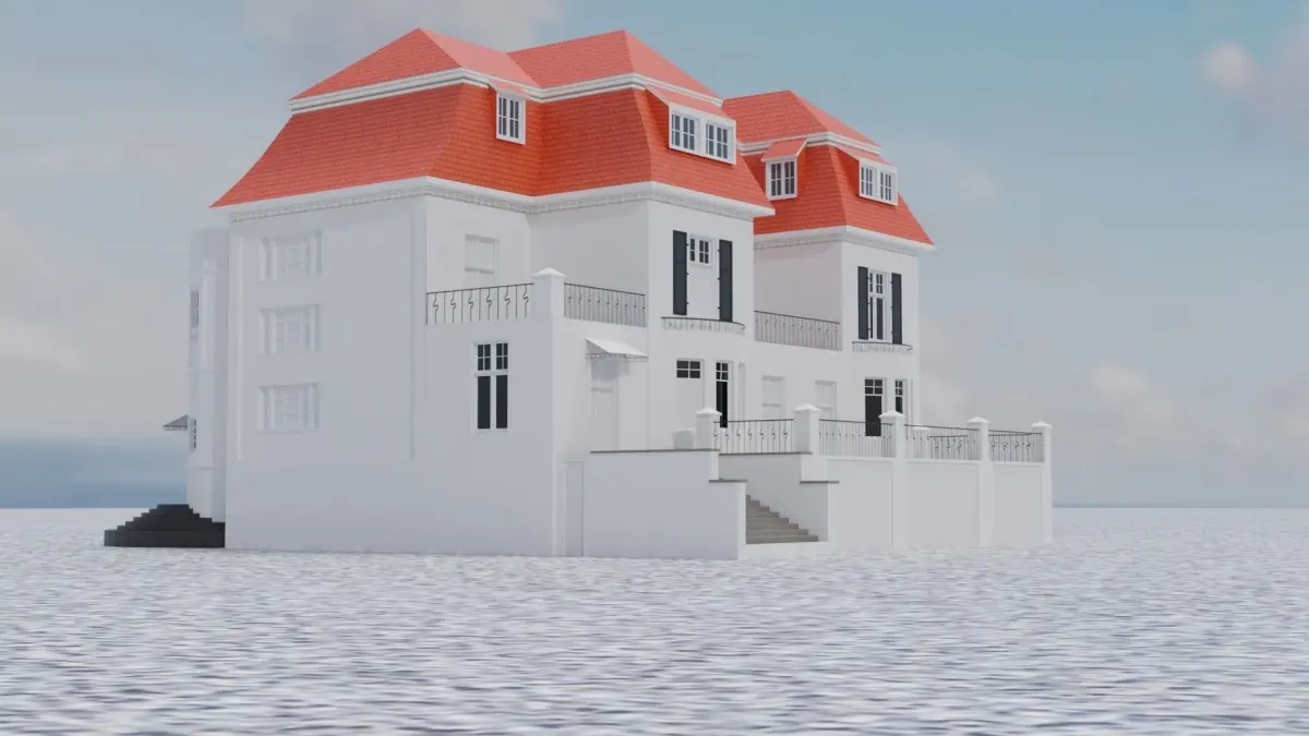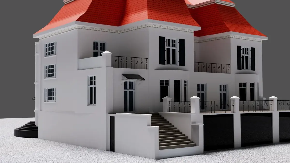 The geometry of the building is simplified to maintain a basic structure. Details such as intricate architectural elements or fine textures are often omitted or reduced. Flat Surfaces and Sharp Edges: