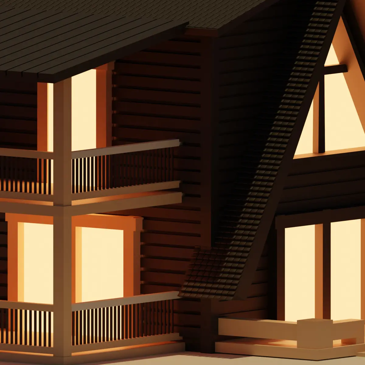 This is a lowpoly black model of a modern, two-story barn house.-No special plugin needed to open scene. File Formats: