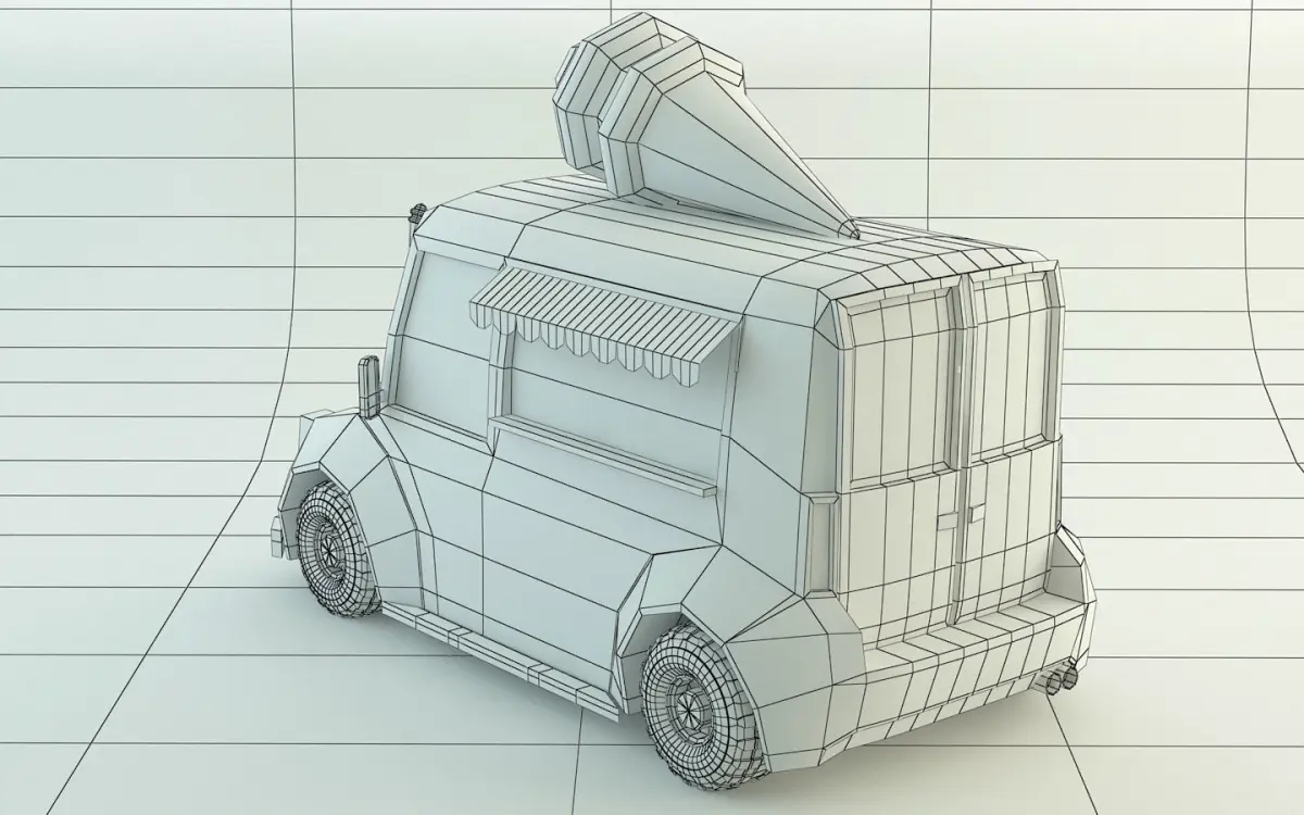 Low Poly Ice-Cream Van Model Created In 3DS Max 2012.