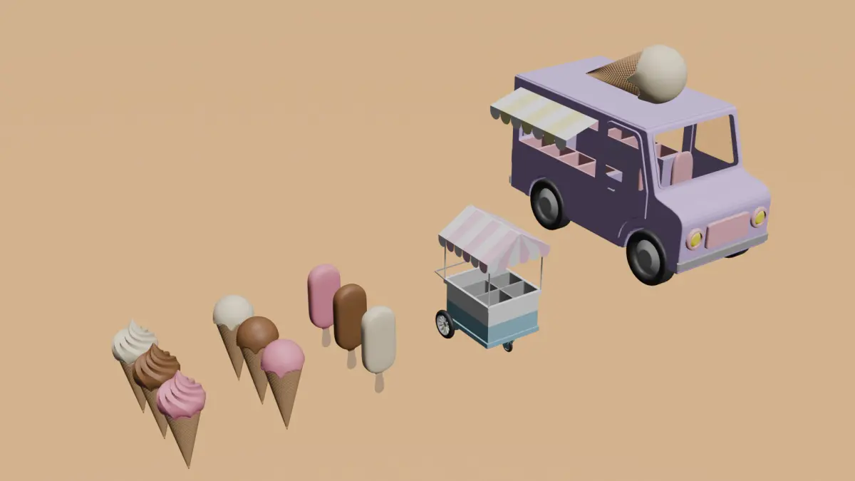 HomeCatalogLow poly ice creams cars and trucks Summer assets pack part II Low-poly 3D model