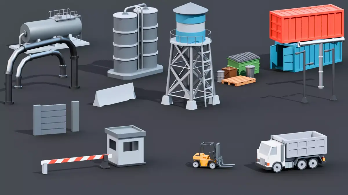 This comprehensive asset pack contains over 120 unique 3D models designed for creating industrial zones, factory complexes, and logistics hubs. Whether you are building a tycoon simulator, a top-down strategy game, or a stylized action environment, this pack provides all the building blocks you need.