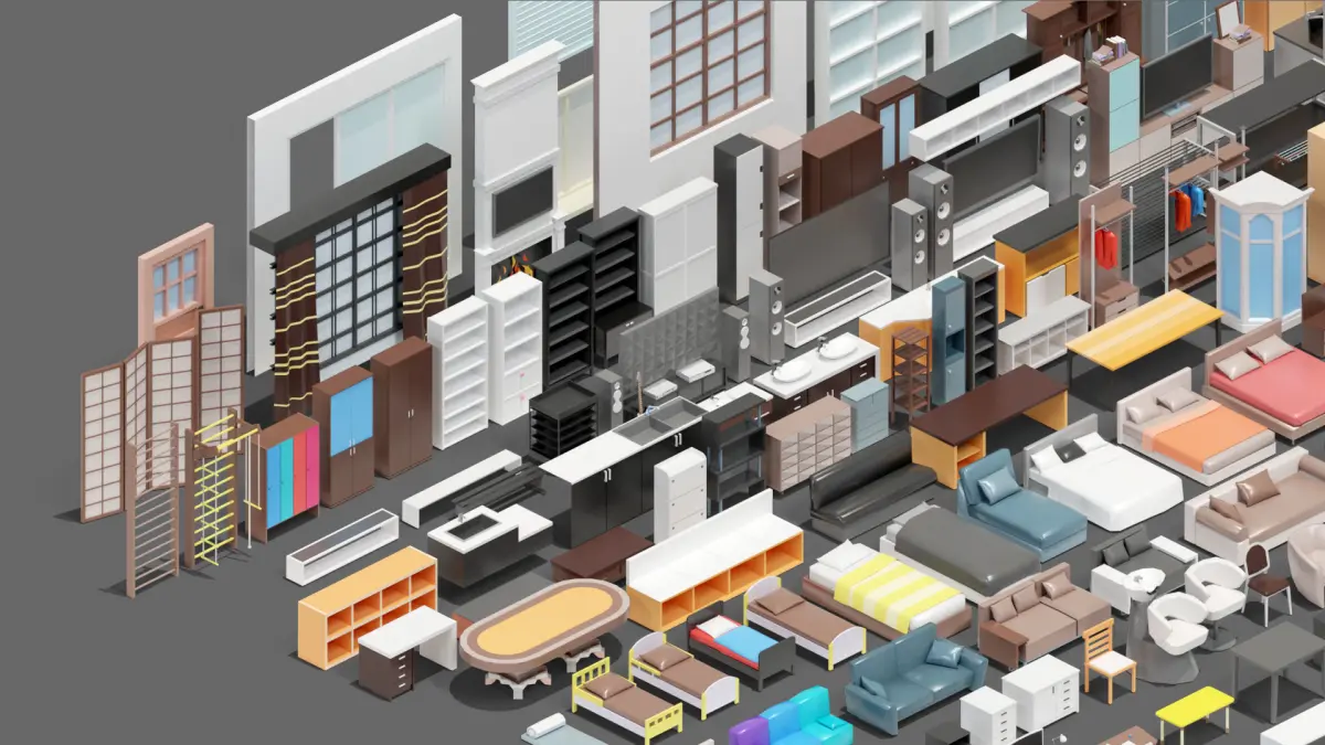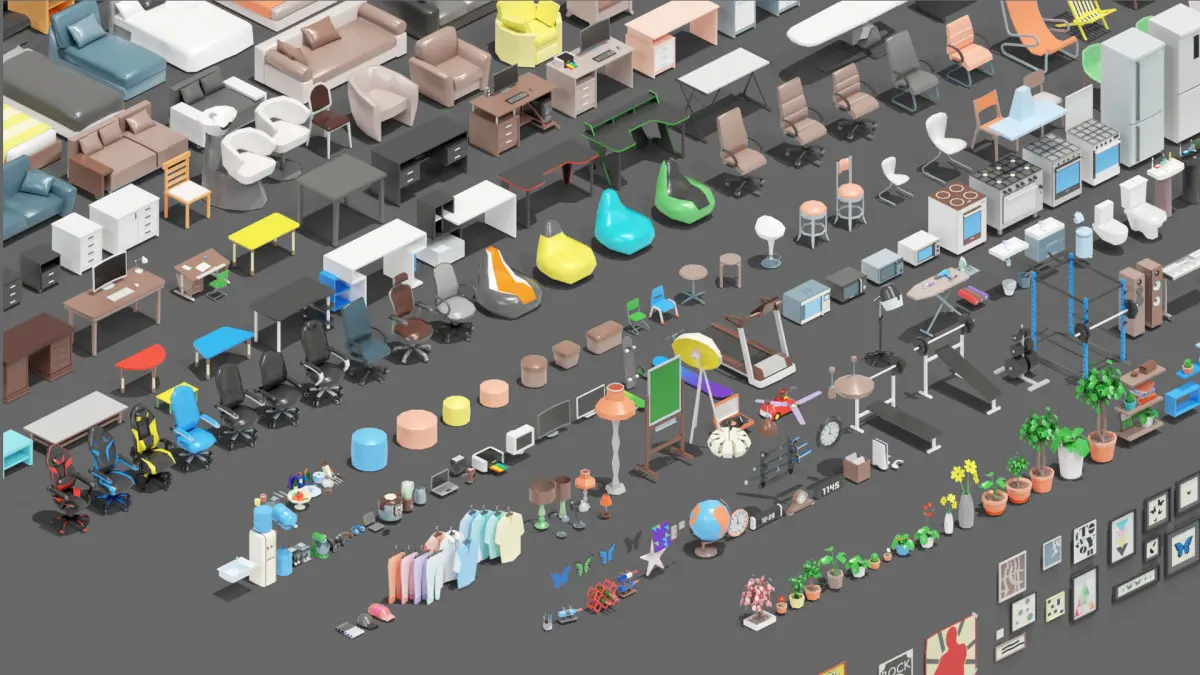 cabinets, beds, sofas, bedside tables, chairs, musical instruments, tables, plants, paintings, kitchen appliances, refrigerators, gas stoves, interior appliances, household appliances, with this set you can create any room, apartment!